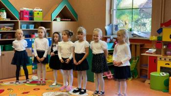 Z okazji tak wyjątkowego święta oddział „Żabek” przygotował piękne przedstawienie dla wszystkich pracowników przedszkola. A przedszkolaki składają wszystkim Panią serdeczne życzenia.