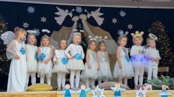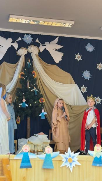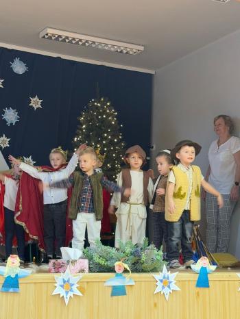 W dniu 16 grudnia dzieci z oddziału „Kaczuszek” miały zaszczyt zaprosić rodziców na przedstawienie Jasełkowe opowiadające o tradycjach związanych ze Świętami Bożego Narodzenia. Dzieci znakomicie wcieliły się w swoje role ukazując swoje zdolności aktorskie. Po przedstawieniu odbyły się warsztaty, podczas których wspólnie wykonali bożonarodzeniowe ozdoby. |