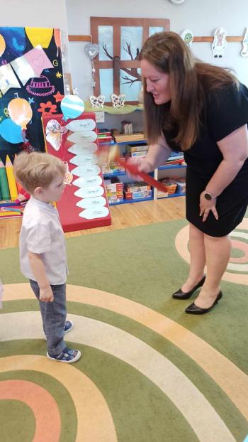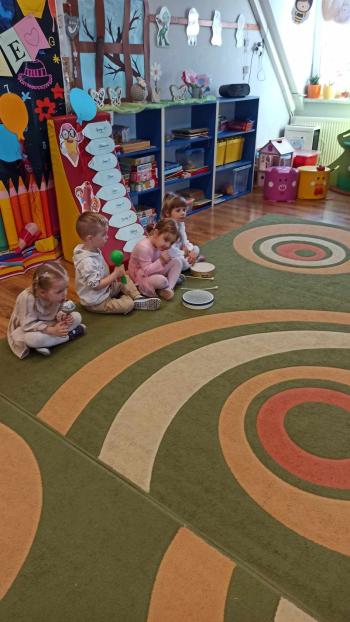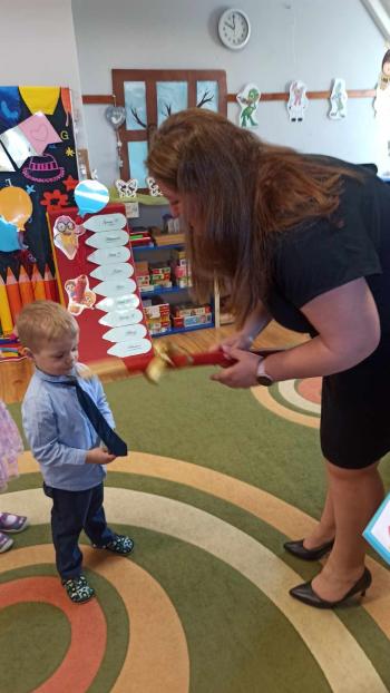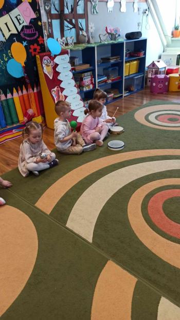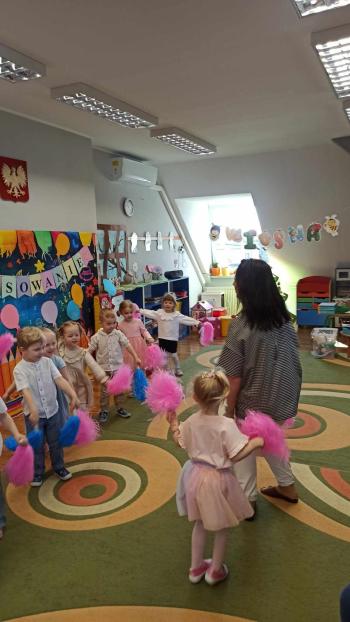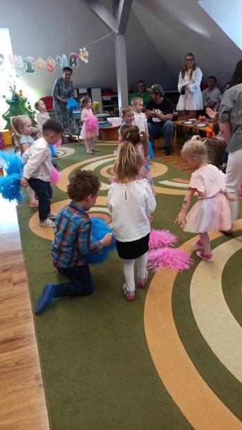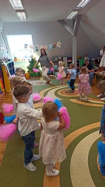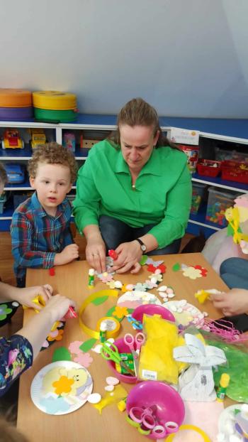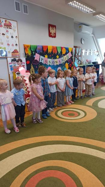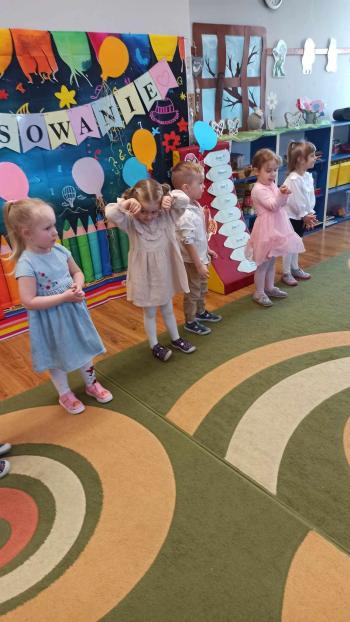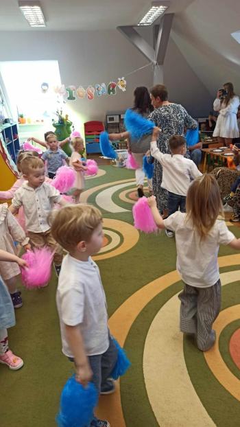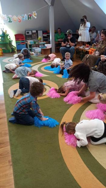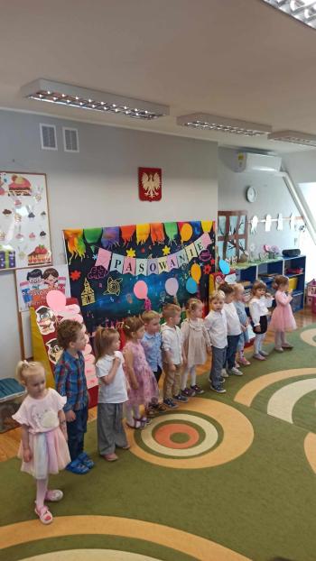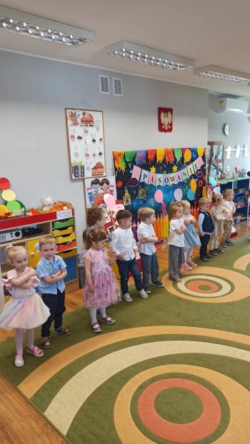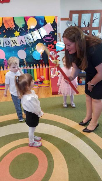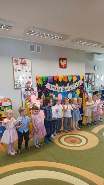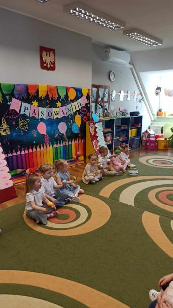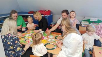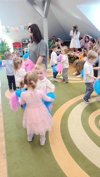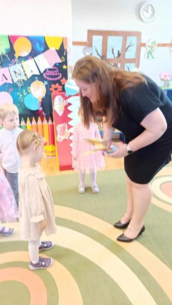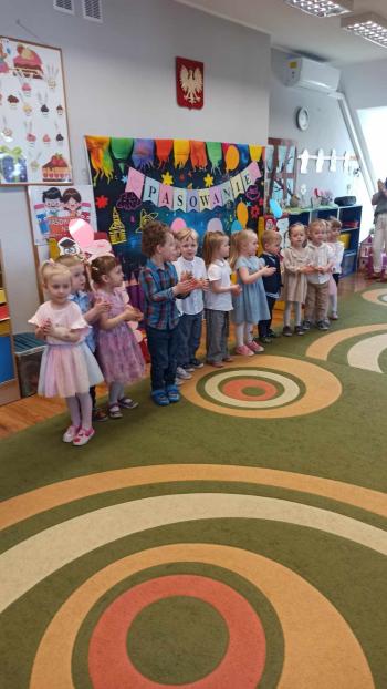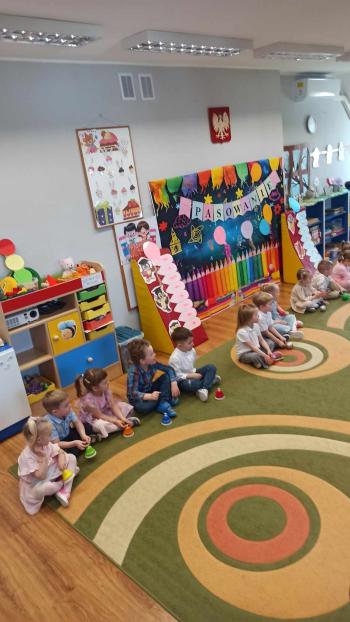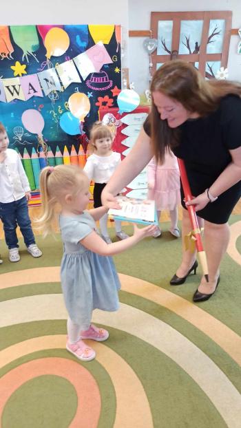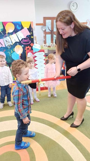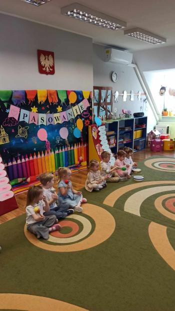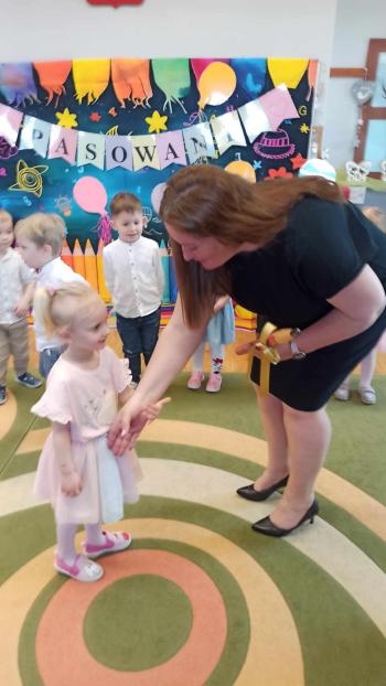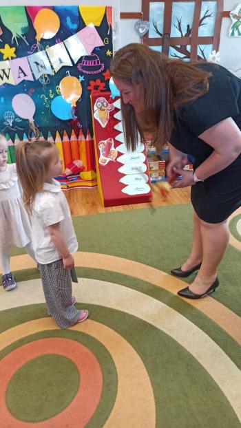 „Słoneczka” – 14 IV - W najmłodszej grupie warsztaty wielkanocne były połączone z uroczystym „Pasowaniem na przedszkolaka”. Maluchy zaprezentowały krótki program artystyczny: wierszyki, piosenki i zabawy taneczne. Złożyły uroczystą przysięgę, po której „specjalnym ołówkiem” pani dyrektor pasowała ich na przedszkolaków. „Słoneczka” otrzymały dyplomy, upominki oraz słodkie rożki od swoich starszych kolegów z grupy „Kaczuszek” i „Żabek”. Po uroczystości wspólnie z rodzicami stworzyły niepowtarzalne dekoracje świąteczne – ścienne ozdoby wielkanocne, które pozwoliły im rozwijać kreatywność, ale także sprzyjały budowaniu relacji, integracji i wspólnej zabawy w przyjaznym otoczeniu. |