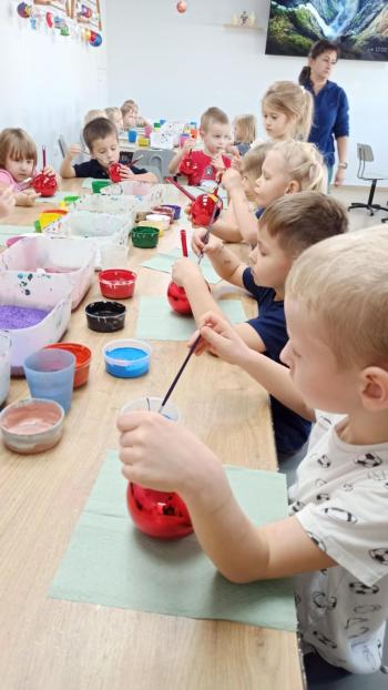 Kaczuszki oraz Żabki 5 listopada były na wycieczce w parku rozrywki Ampa w Wieliczce. Przedszkolaki spędziły ten wspaniały dzień łącząc aktywną zabawę na sali zabaw z twórczym działaniem na zorganizowanych warsztatach malowania ozdób szklanych. Podczas warsztatów samodzielnie tworzyły własne, wyjątkowe dekoracje choinkowe. Wyjazd sprzyjał rozwijaniu kreatywności, motoryki małej oraz integracji między dziećmi. Wykonane prace stały się piękną pamiątką z tego pełnego wrażeń dnia. |