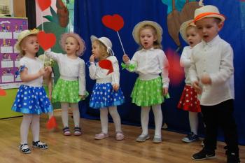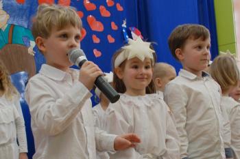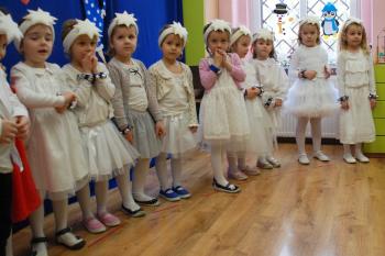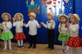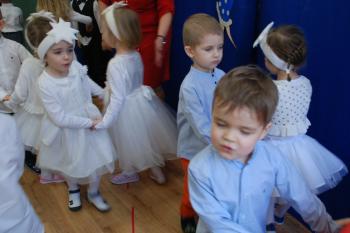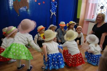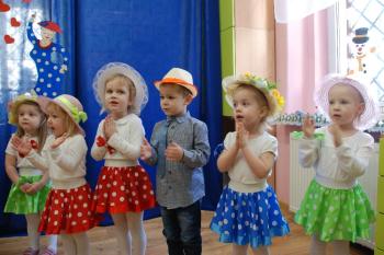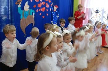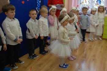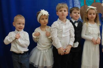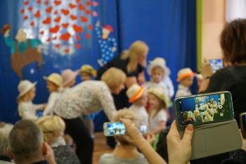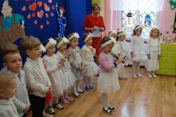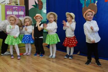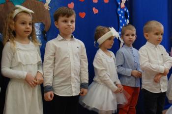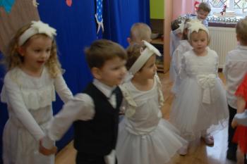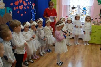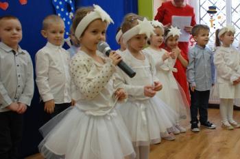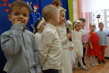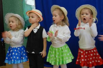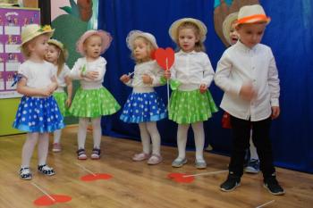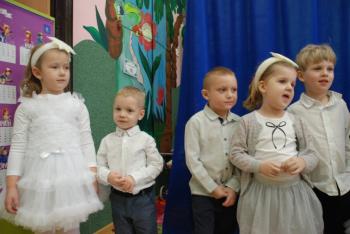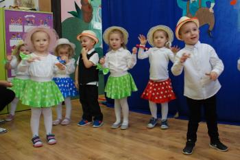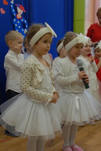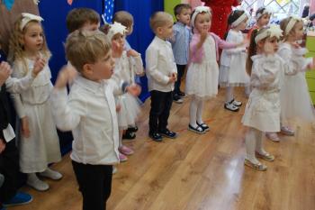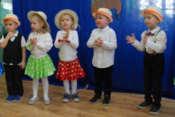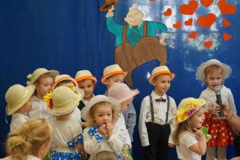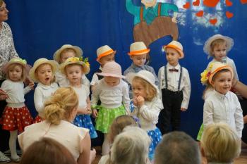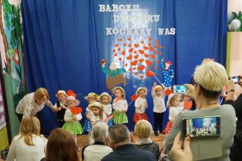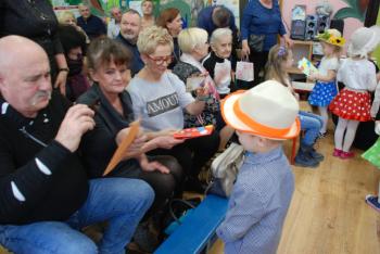 Dwie najmłodsze grupy świętowały w tym samym czasie w przedszkolu.Dziadkowie nie mieli nic przeciwko, że mogą oglądać swoje wnuczęta w kameralnych warunkach – w pełnej krasie i okazałości. Dzieciaczki bardzo się postarały i wszyscy pięknie występowali. Nasi goście byli zachwyceni. Po krótkich występach był słodki poczęstunek, pyszne placuszki i smaczna kawka. Wszyscy byli zadowoleni. To był naprawdę dobry dzień.