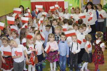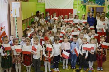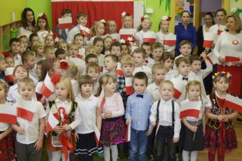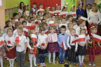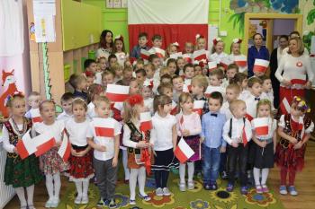 W naszym przedszkolu uroczyście obchodziliśmy Dzień Niepodległości.