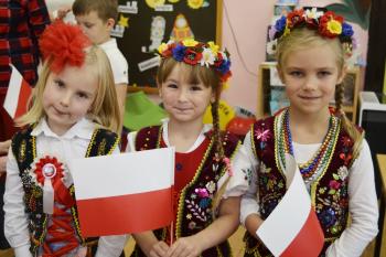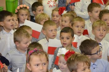 W podniosłej i uroczystej atmosferze uczciliśmy Dzień Odzyskania Niepodległości. Wspólnie odśpiewaliśmy także hymn Polski "Mazurek Dąbrowskiego".
