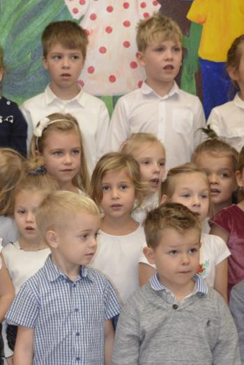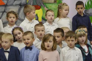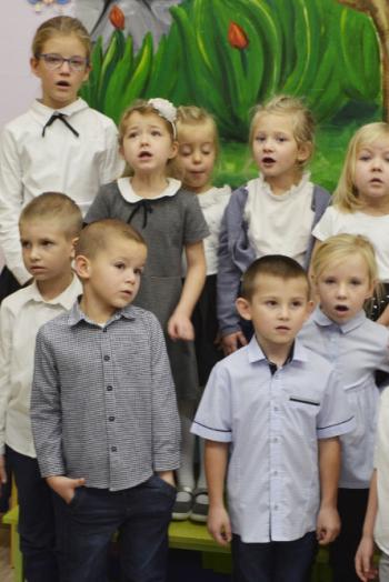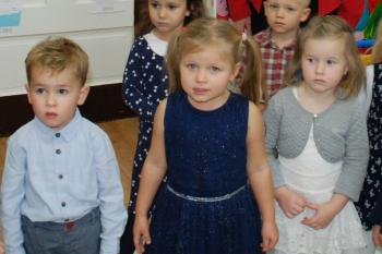 Dzieci pięknie ubrane, z godnością i honorem odśpiewały Mazurka Dąbrowskiego. Cieszymy się, że możemy wzbudzać patriotyczne postawy już od najmłodszych lat.