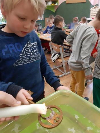 W naszym przedszkolu co roku podtrzymuje się tradycje związane z "Andrzejkami". Temu wydarzeniu towarzyszyły konkursy, zabawy i wróżby andrzejkowe. Wszystko to odbywało się w rytm tańców i śpiewów. Nie zabrakło również tradycyjnego ustawienia "bucików", lania woskiem i innych wróżb związanych z tym świętem. Przedszkolaki z uśmiechem na twarzy chętnie brały udział w magicznym rytuale andrzejkowym. Dzień ten dostarczył przedszkolakom wielu przeżyć i emocji, a przede wszystkim stał się okazją do rozbudzenia dziecięcej ciekawości oraz chęci poznawania naszej ludowej tradycji.