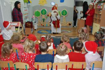 Mikołaj odwiedził dzieci w każdej grupie, gdzie został przywitany piosenkami, wierszami lub tańcami. W podziękowaniu za tak ciepłe przyjęcie, Mikołaj każdemu dziecku podarował piękne prezenty. Nie zapomniał oczywiście o pracownikach przedszkola. Na koniec wizyty dzieci oczywiście obiecały, że cały rok będą grzeczne i pomocne i będą niecierpliwie czekać na wizytę świętego Mikołaja już w przyszłym roku.