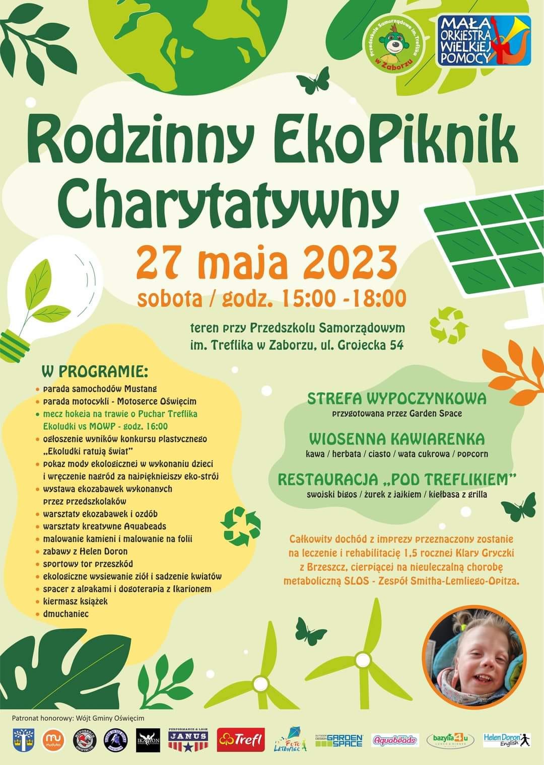 Moc atrakcji dla całych rodzin czeka na uczestników Rodzinnego Ekopikniku Charytatywnego, który w sobotę 27 maja br. odbędzie się przy naszym Przedszkolu Samorządowym im. Treflika w Zaborzu.