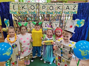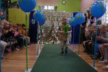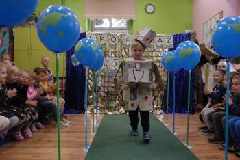 W naszym przedszkolu odbył się pokaz mody ekologicznej. Dzieci ze wszystkich grup zaprezentowały bardzo pomysłowe stroje wykonane wraz z rodzicami z różnorodnych materiałów przeznaczonych do recyklingu: m. in. kartony, worki, folia spożywcza, gazety, butelki plastikowe, kartonowe opakowania, wytłoczki po jajkach ...Przedszkolaki doskonale sprawdziły się w rolach modeli i modelek, a także udowodniły, że moda i ekologia mogą iść w parze.