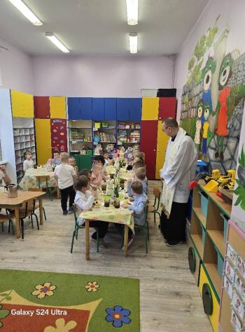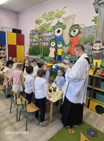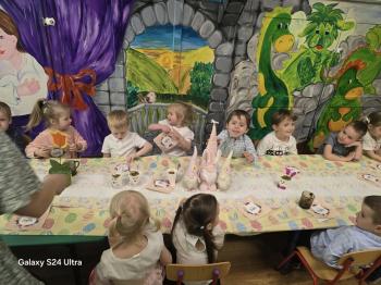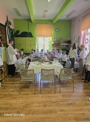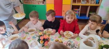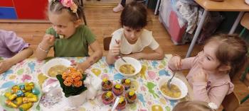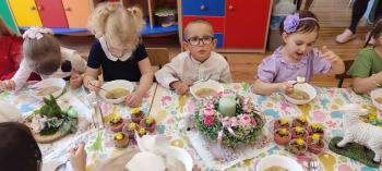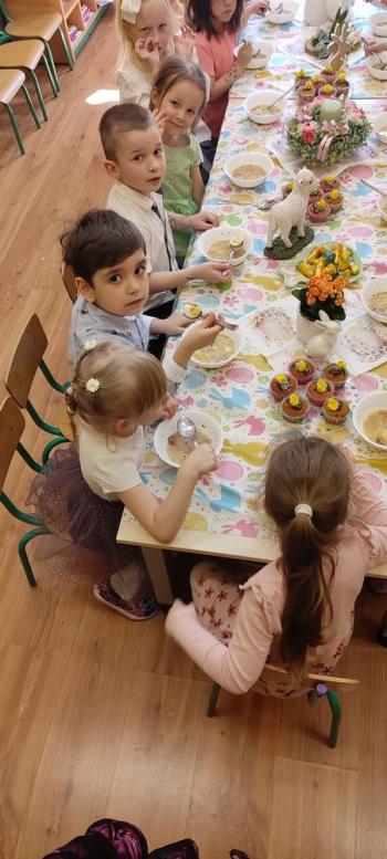 W piątek, 14 kwietnia, w naszym przedszkolu odbył się tradycyjny Obiad Wielkanocny, które wprowadziło nas w świąteczny nastrój i pozwoliło wspólnie celebrować ten wyjątkowy czas. W pięknie udekorowanych salach dzieci zasiadły do wspólnego stołu, na którym nie zabrakło świątecznych przysmaków – jajek, białej kiełbasy, żurku i słodkich wypieków. Każda grupa miała okazję złożyć sobie życzenia, a także porozmawiać o wielkanocnych tradycjach i symbolach, takich jak pisanki, baranek czy palma. To wyjątkowe spotkanie było nie tylko okazją do wspólnego świętowania, ale również do nauki – dzieci uczyły się, jak ważna jest wspólnota, dzielenie się i okazywanie sobie życzliwości.