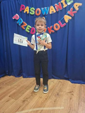 Każdy nowy przedszkolak otrzymał pamiątkowy dyplom i drobny upominek.