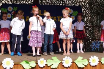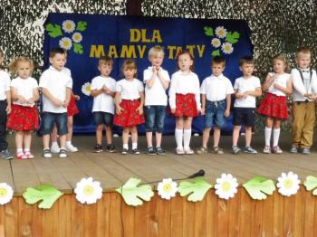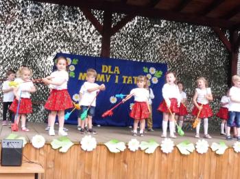 23 czerwca 2017r. na terenie obok rezmizy OSP we Włosienicy gościliśmy rodziców naszych przedszkolaków, za sprawą obchodów Dnia Mamy i Taty oraz pożegnania naszych najstarszych przedszkolaków, którzy po wakacjach pójdą do szkoły. Przedszkolaki wystąpiły na scenie w krótkim programie artystycznym, wyrażając swoją miłość, szacunek i podziękowanie kochanym rodzicom. Były również piosenki i energetyczne tańce przy rytmach letnich przebojów. Następnie średniaki pożegnały starszaków wierszem, dziękując im za wspólnie spędzone chwile w przedszkolu i życząc sukcesów w szkole.