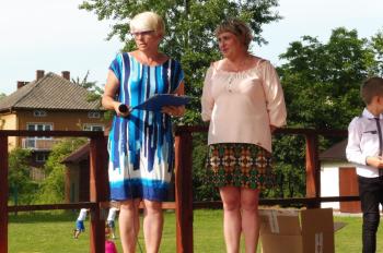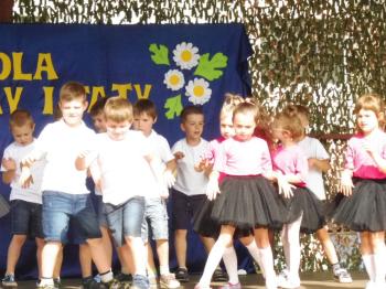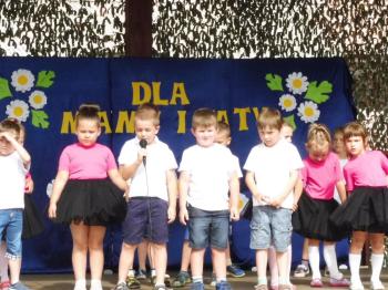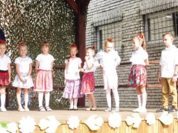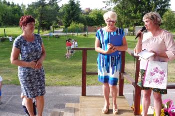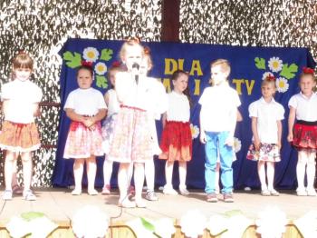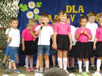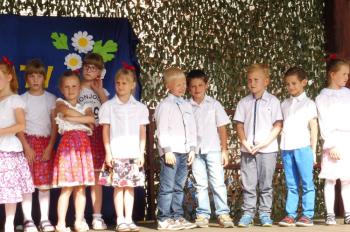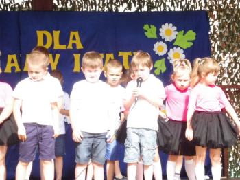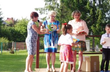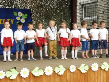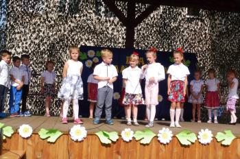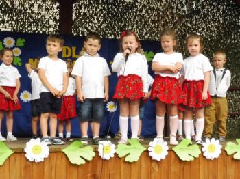 Po występach dzieci, pani dyrektor Leokadia Kukla skierowała ciepłe słowa do kończących edukację przedszkolną starszaków, do których przyłączyła się również ich wychowawczyni pani Krystyna Momot. Dzieci na pamiątkę przedszkolnych chwil otrzymały pamiątkowe dyplomy i książeczki.