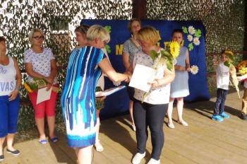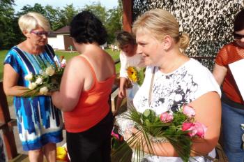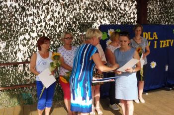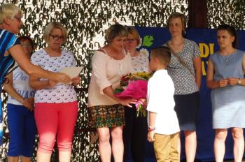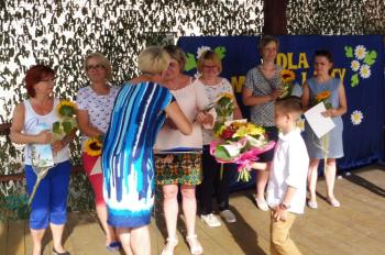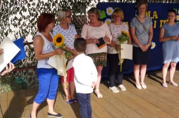 Na zakończenie części oficjalnej pani dyrektor podziękowała wszystkim rodzicom za całoroczną działalność na rzecz dzieci i przedszkola wręczając symboliczne kwiaty słonecznika, a z kolei Rada Rodziców dziękowała wszystkim pracownikom przedszkola za opiekę, wychowanie i edukację dzieci.