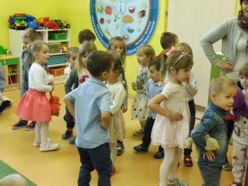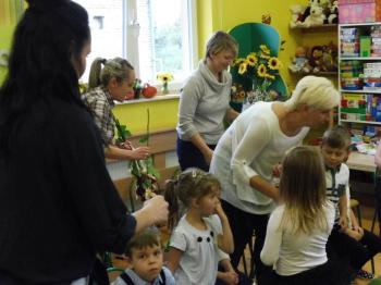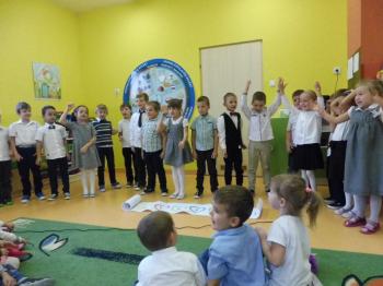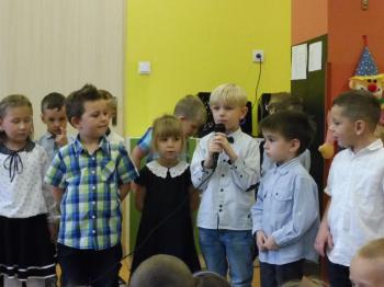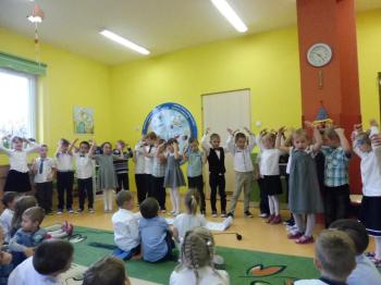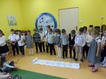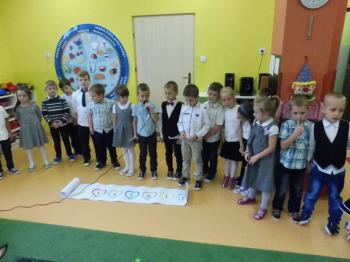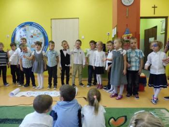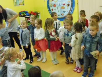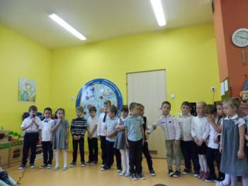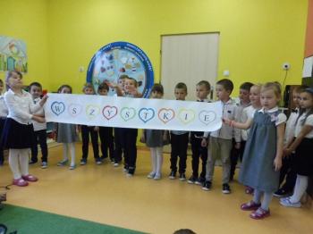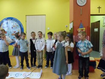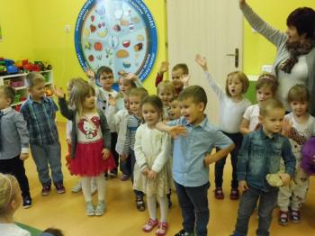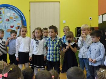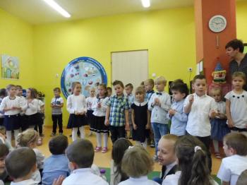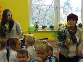 13 października obchodziliśmy w naszym przedszkolu Dzień Edukacji Narodowej. W kameralnym gronie dla pani dyrektor, swoich wychowawczyń, pań kucharek, intendentki, pań woźnych i pana gospdarza, przedszkolaki wystąpiły w krótkim programie artystycznym. Dzieci podziękowały pracownikom przedszkola za ich pracę i serce wkładane każdego dnia w ich wychowanie oraz naukę wierszem, tańcem i piosenką. Na uroczystości obecne były również panie z Rady Rodziców, które w imieniu wszystkich dzieci i rodziców złożyły najserdeczniejsze życzenia i wręczyły kwiaty. Na zakończenie spotkania pani dyrektor Leokadia Kukla podziękowała przedszkolakom za piękny występ i życzyła wszystkim pracownikom sukcesów w pracy i szczęścia w życiu osobistym.