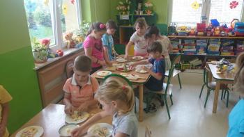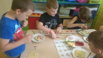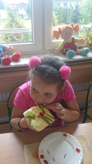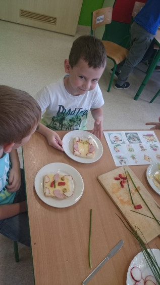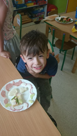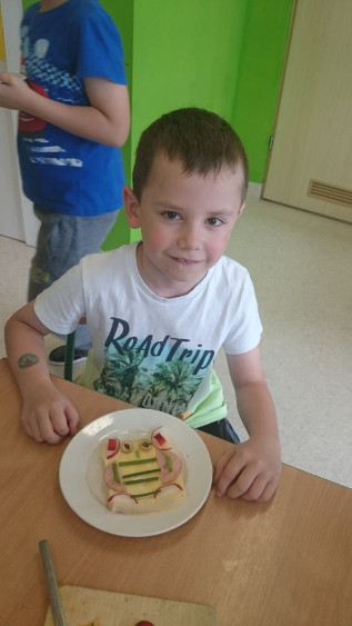 W czasie kolejnego spotkania w Knedelkowie mali kucharze przygotowali piękne, kolorowe kanapki. Dzieci wykazały się ogromną wyobraźnią tworząc kanapkowe zwierzątka, krajobrazy, a nawet kanapkowego Minionka. Po nacieszeniu oczu pięknymi, kolorowymi kompozycjami przyszedł czas na nacieszenie brzuszków – wszystkie kanapki zostały zjedzone z wielkim smakiem :)
