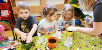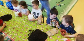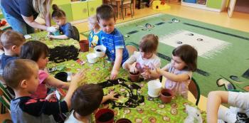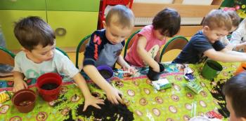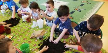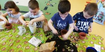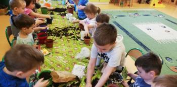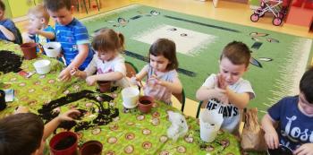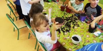 Wiosna tuż, tuż, więc w naszych przedszkolnych salach powstają zielone ogródki...