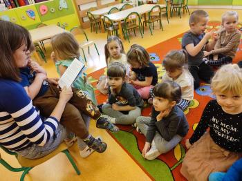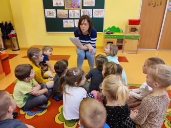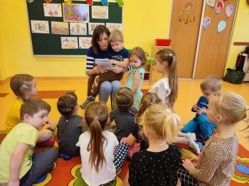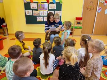 23 lutego w ramach naszej przedszkolnej akcji pt. ,,Bajkowe czytanie", Pani Karina Grubka odwiedziła grupę Biedronek i Motylków. To było bardzo miłe spotkanie, podczas którego dzieci wysłuchały pieknej bajki autorstwa pani Kariny pt. ,,Myszka z plastikowego domku." Dzieci z ogromnym zainteresowaniem słuchały tej pięknej bajki ekologicznej i oglądały ilustracje, które pani karina stworzyła wspólnie ze swoimi dziećmi. Warto dodać, iż bajka została napisana specjalnie na konkurs literacki ,,Eko-bajka", który został zorganizowany przez Gminę Oświęcim w ramach projektu ,,Wdrażanie Programu ochrony powietrza dla województwa małopolskiego - Małopolska w zdrowej atmosferze," w którym zajęła I miejsce. Bardzo serdecznie gratulujemy pani Karinie talentu, wyobraźni i lekkiego pióra, życząc dalszych sukcesów.