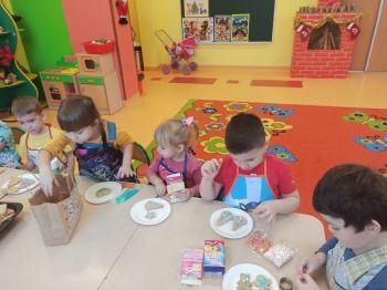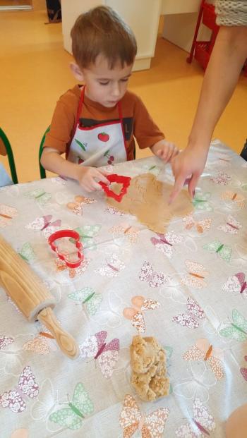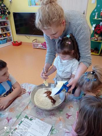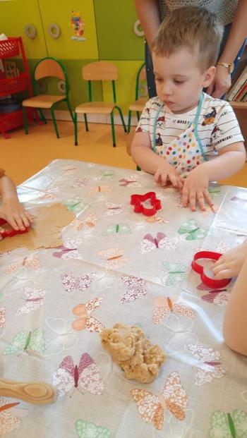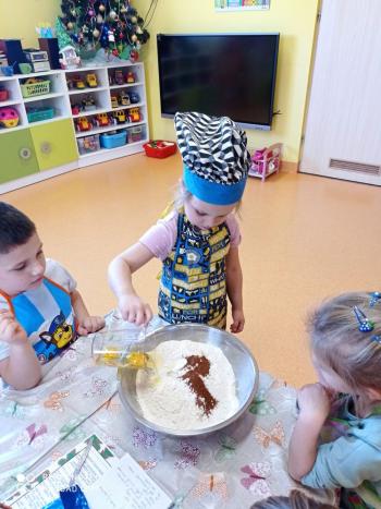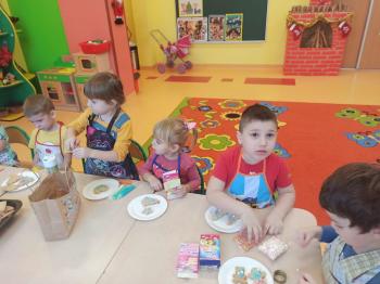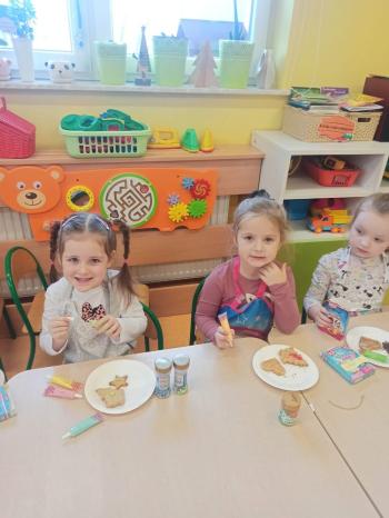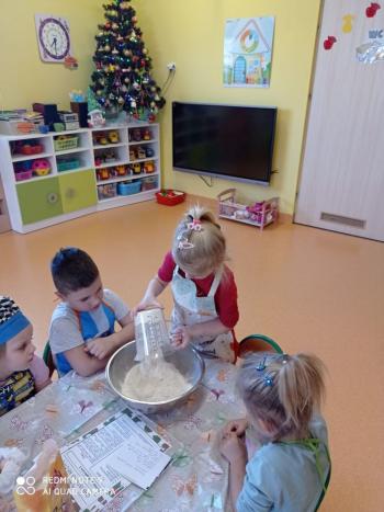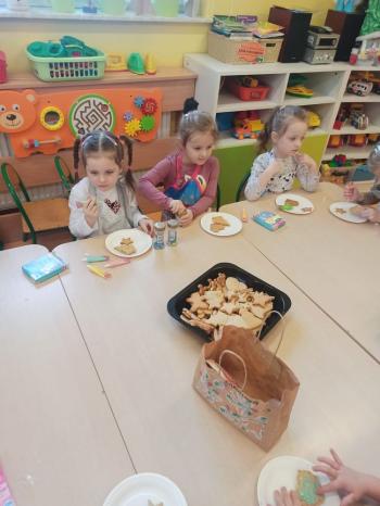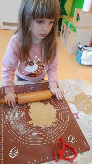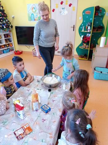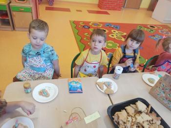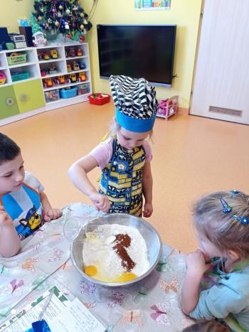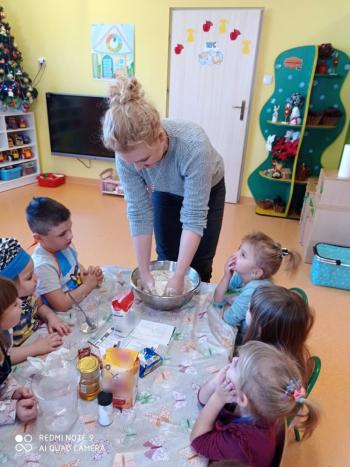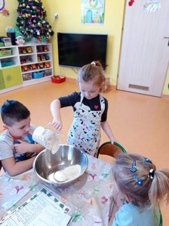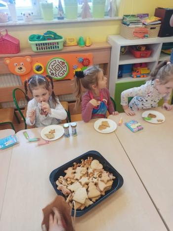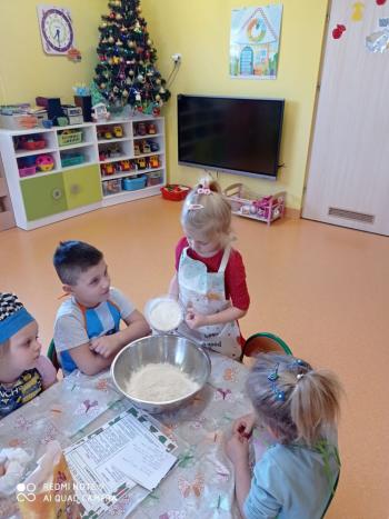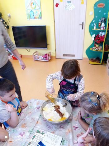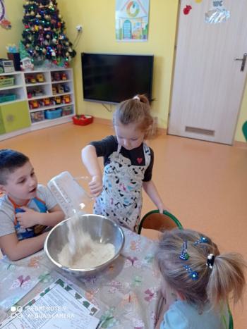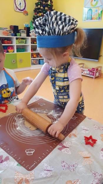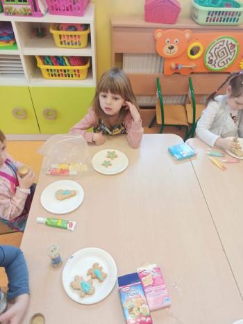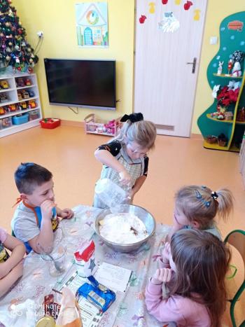 Przedświąteczny tydzień w grupie Motylków upłynął nam miło na przygotowaniach do Świąt Bożego Narodzenia. Oprócz wykonania dekoracji na świąteczne drzewko, maluszki postanowiły również zadbać o smakołyki na świąteczny stół. W poniedziałek salę Motylków przepełniały piękne zapachy pierniczków. Maluszki wspólnie przygotowały potrzebne ciasto, by później móc nadać ciasteczkom różnorakie kształty. Dużo zabawy i radości było także podczas ich dekorowania, a najwięcej satysfakcji dała możliwość ich skosztowania i świadomość, że sami je wykonali. Smak pierniczków zaspokoił wszystkie małe podniebienia
