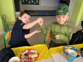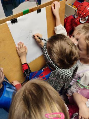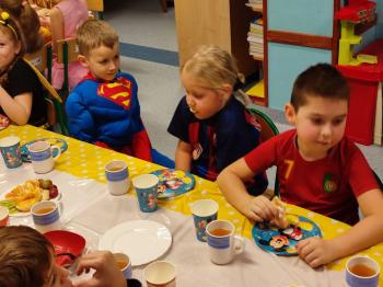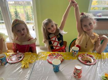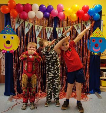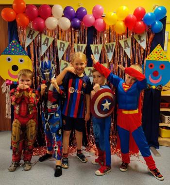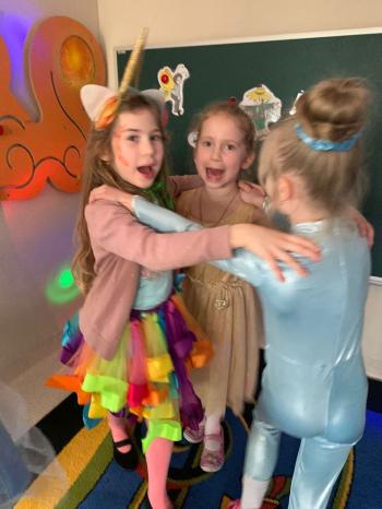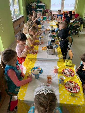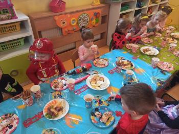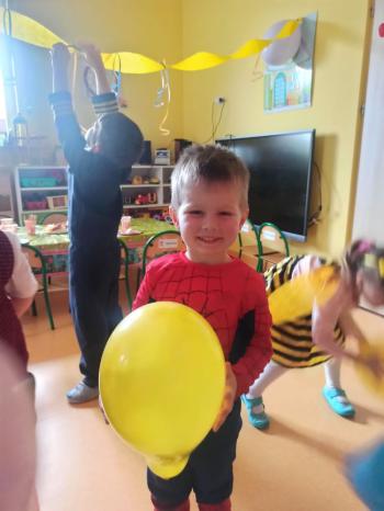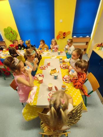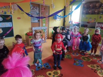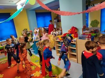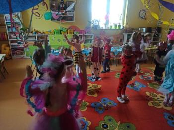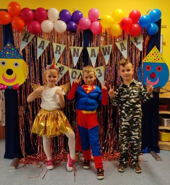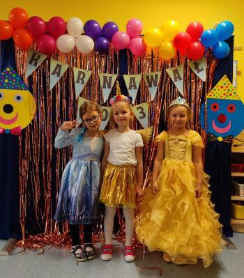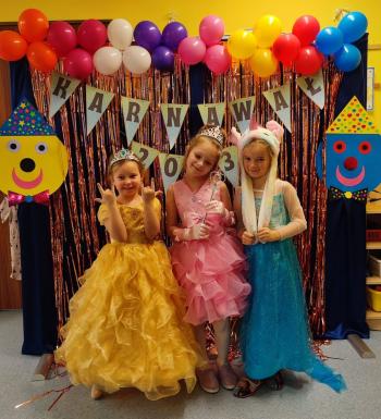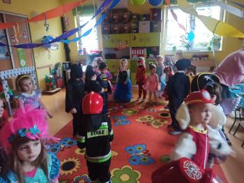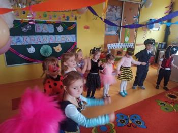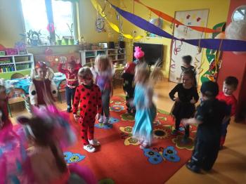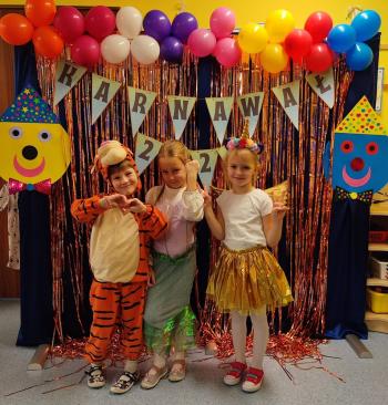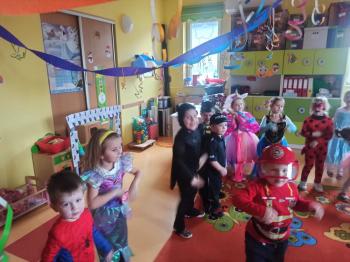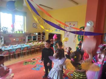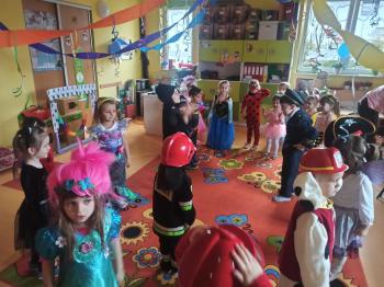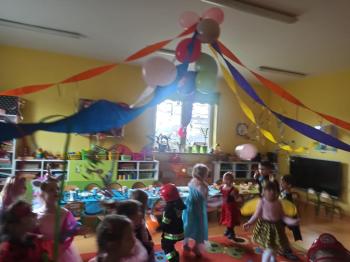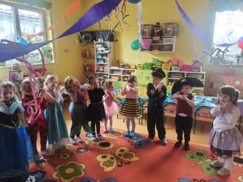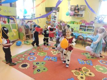 14 lutego w naszym przedszkolu odbyły się aż trzy bale karnawałowe, ponieważ w tym roku każda grupa bawiła się w swojej sali. Przedszkolaki bawiły się świetnie nie tylko przy rytmach dziecięcych przebojów, ale i światowych hitów muzycznych, które jak się okazuje bardzo dobrze znają. Tego dnia trudno było rozpoznać naszych przedszkolaków, za sprawą ich ciekawych strojów karnawałowych, w których prezentowali się imponująco. Wszyscy uczestniczyli w wielu zabawach karnawałowych, tych tradycyjnych i nowych dotąd nieznanych, a na twarzach uczestników malowały się uśmiechy i słychać było okrzyki radości. Dzieci uczestniczyły też w słodkim poczęstunku, a na zakonczenie tego wyjątkowo miłego dnia każdy otrzymał kolorowy balonik i drobny upominek.