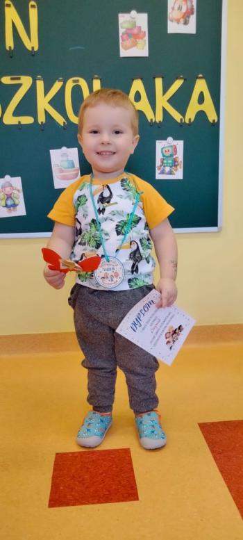 Motylki powoli oswajają się z życiem przedszkolnym i jak na prawdziwych przedszkolaków przystało, również obchodzą przedszkolne święta, a jednym z nich niewątpliwie jest Dzień Przedszkolaka. U Motylków to święto miało charakter bardzo sportowy, a dzieci bardzo chętnie i z zainteresowaniem uczestniczyły w kolejnych aktywnościach ruchowych i podejmowały kolejne wyzwania z uśmiechem na buzi. Na zakończenie miłego dnia, każdy otrzymał słodki upominek oraz pamiątkowy dyplom.