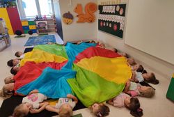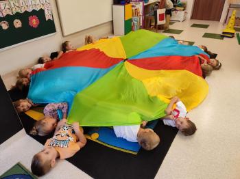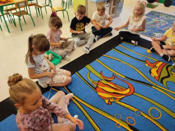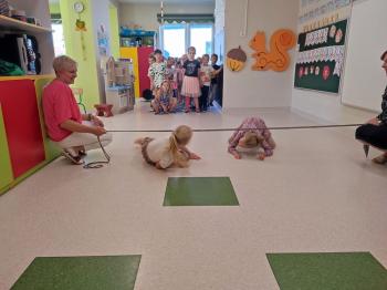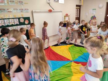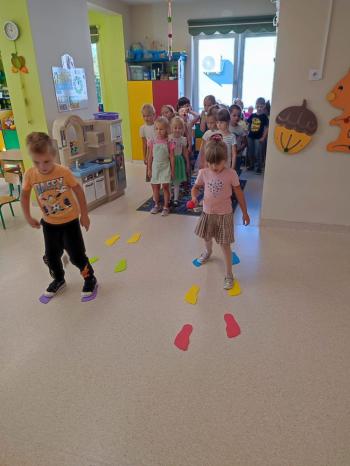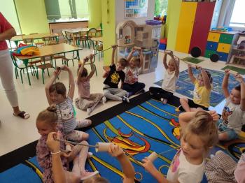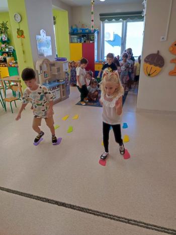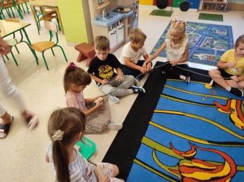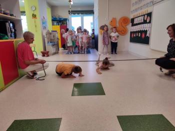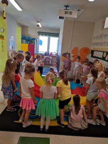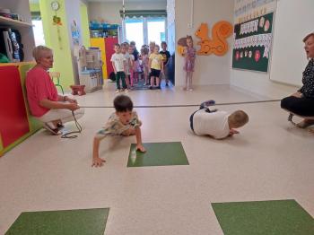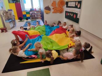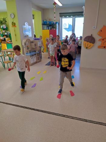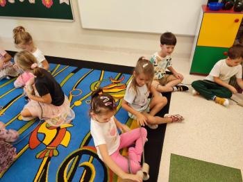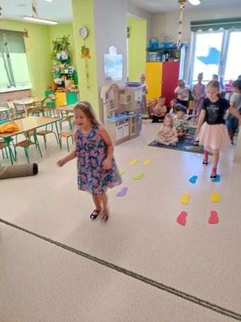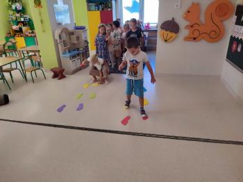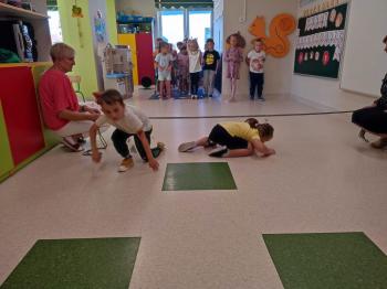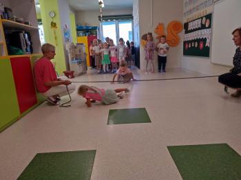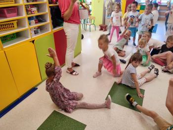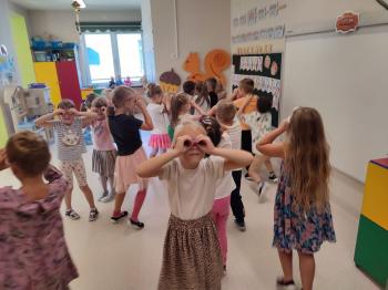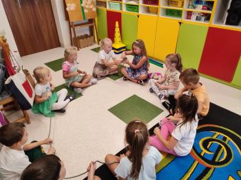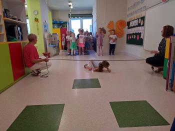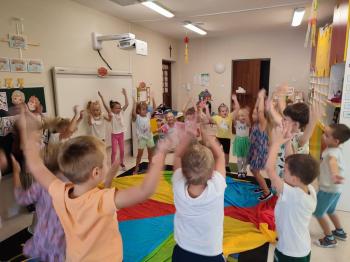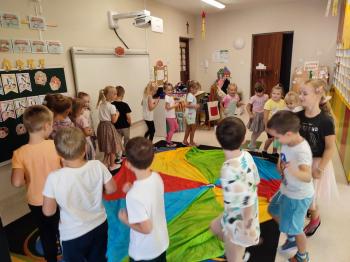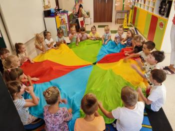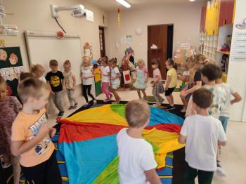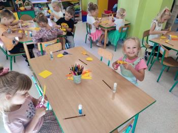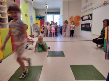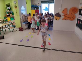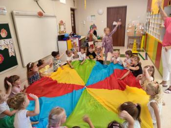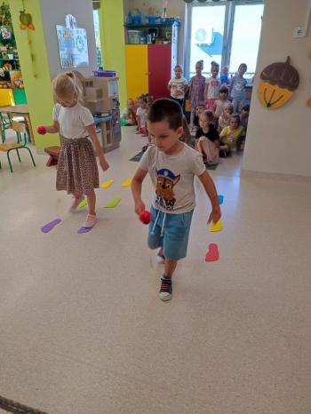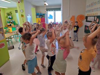 Dzień Przedszkolaka w grupie Pszczółek upłyną w bardzo miłej atmosferze, jak zresztą każde święto w tej grupie. Świętowanie rozpoczęliśmy od zaśpiewania piosenki, którą znają wszystkie przedszkolaki czyli ,,Jestem sobie przedszkolaczek,” następnie odtwarzaliśmy opowieść ruchową związaną z codziennym życiem każdego przedszkolaka, a wykorzystaliśmy do tego niezawodną chustę animacyjną. Sprawdziliśmy spostrzegawczość Pszczółek w zabawie ,,Przedszkolne pomieszczenia,” po czym płynnie przeszliśmy do konkurencji sportowych, w których Pszczółki wykazały się zwinnością i wysoką sprawnością fizyczną. W kolejnym punkcie programu pojawiło się magiczne pudełko, które w czarodziejski sposób pozwoliło zamienić dzieci min. w słonie, skarpetki, baletnice, kamienie i inne rzeczy, a przez to zabawa była przednia. To współpracy w grupach wykorzystaliśmy papierowe rurki, które nakładaliśmy na skakanki, sprawdzając zwinność, szybkość i umiejętność współpracy Pszczółek. Podsumowaniem naszego dnia były wykonane przez dzieci słoneczka odzwierciedlające ich emocje towarzyszące im w byciu przedszkolakiem i jak można było zauważyć w naszej przedszkolnej galerii, są one tylko pozytywne, a wszystkie słoneczka mają uśmiechnięte miny. Na pamiątkę tego miłego wydarzenia dzieci otrzymały drobne upominki i wykonały zdjęcia w fotobudce.
