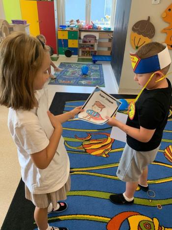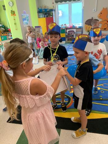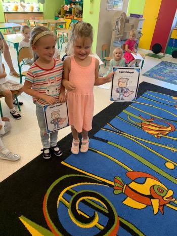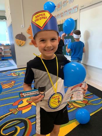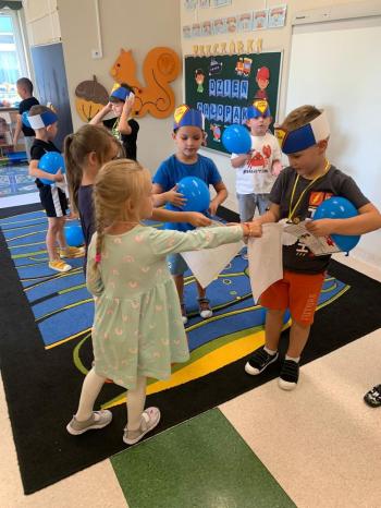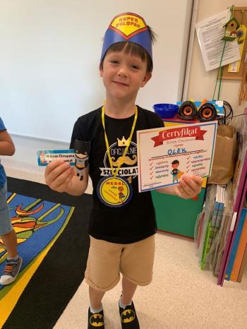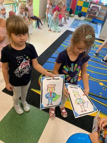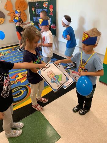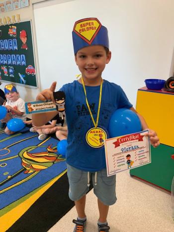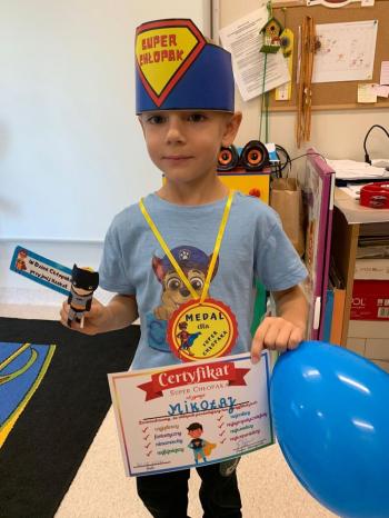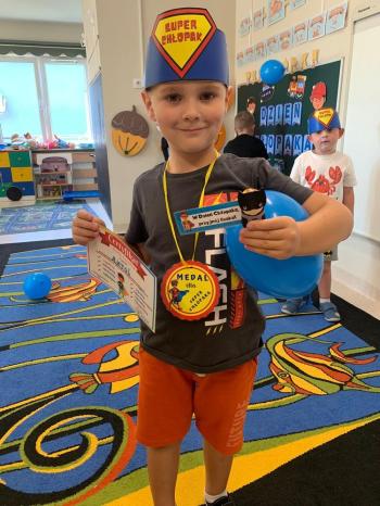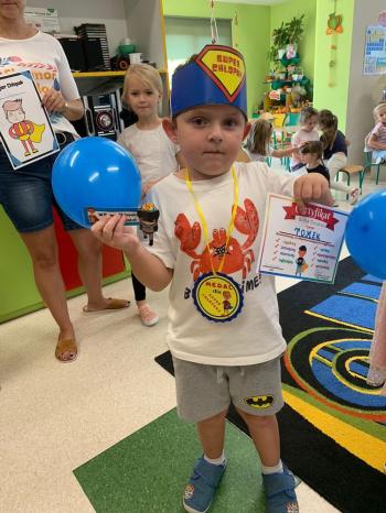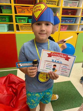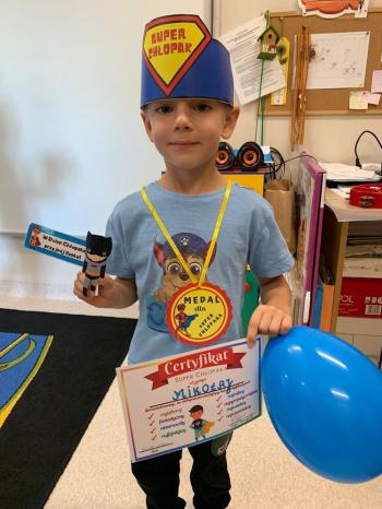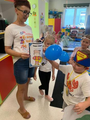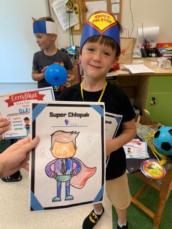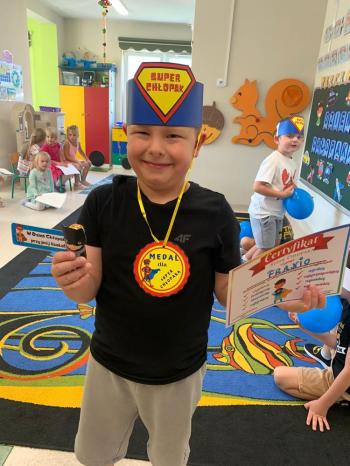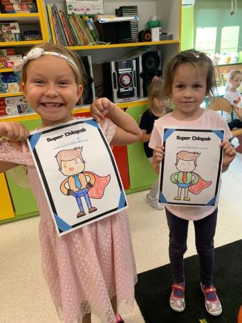 Tak brzmiały życzenia dla Naszych Chłopaków – Pszczółek od dyrekcji, nauczycielek oraz dziewczynek z ich grupy. A po życzeniach, przyszedł czas na wspaniałą zabawę, po której każdy chłopak stał się SUPER CHŁOPAKIEM. Wspólne układanie puzzli, kalambury, ćwiczenia z balonami i piłkami to tylko niektóre z zadań jakie wykonywała męska część grupy Pszczółki. Na koniec, nie zabrakło dla nich oczywiście certyfikatów, medali i prezentów, ale po takim wysiłku i dawania z siebie 100% nie mogło tego zabraknąć. Dziewczynki natomiast nie tylko chętnie kibicowały, ale także tworzyły dla swoich kolegów portrety Super Chłopaka!