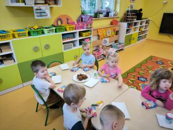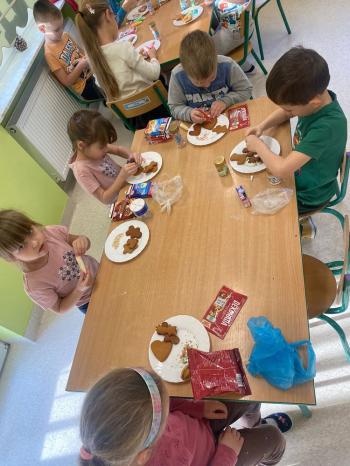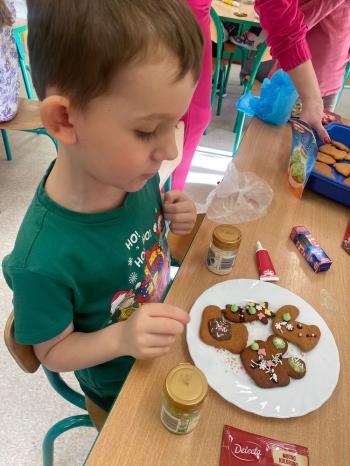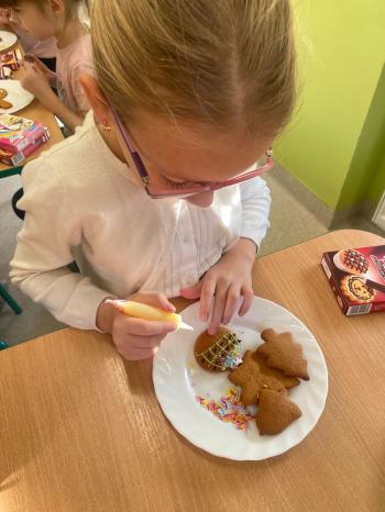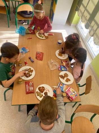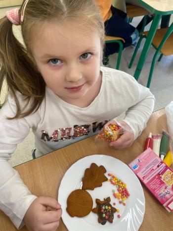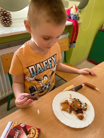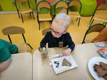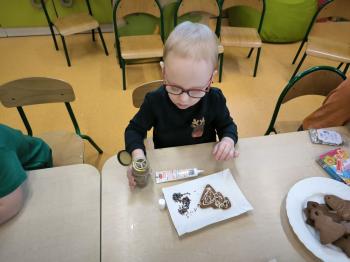 Przedszkolaki tradycje świąteczne dobrze znają i w związku z nimi dzieci z grupy Motylków i Pszczółek, przed świętami zdobiły pierniczki, które następnie zabrały do domu aby ozdobić swoją choineczkę.