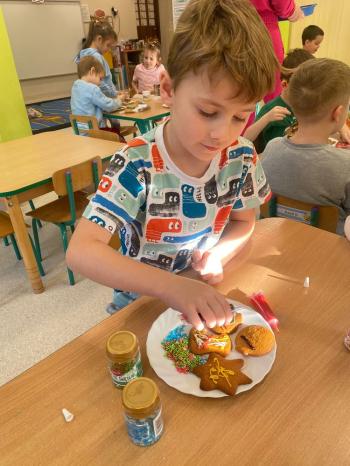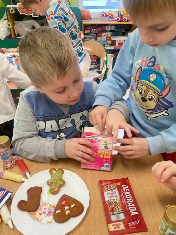 Tuż przed świętami przedszkolaki ozdabiały pachnące pierniczki...