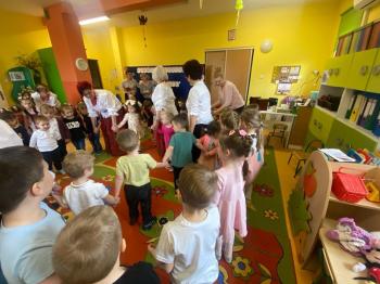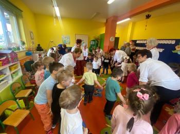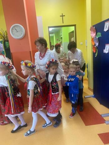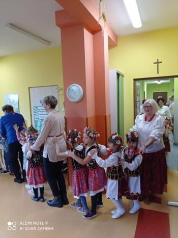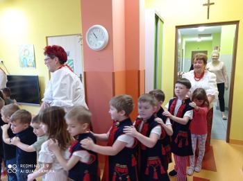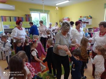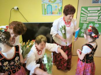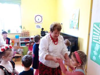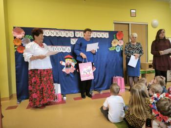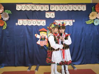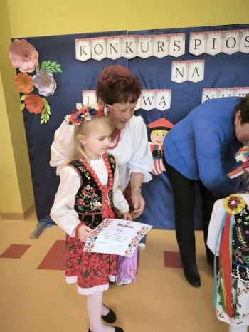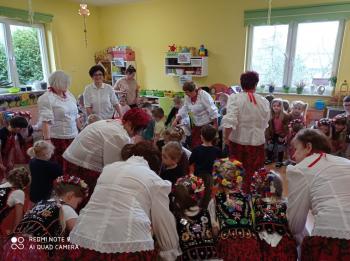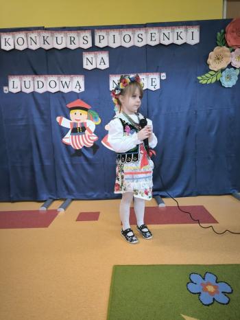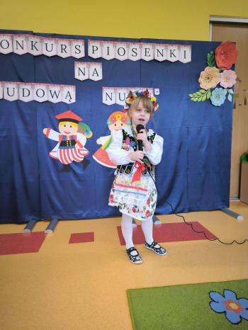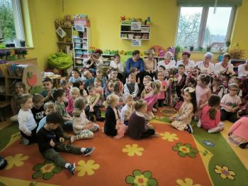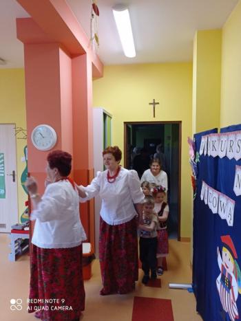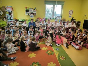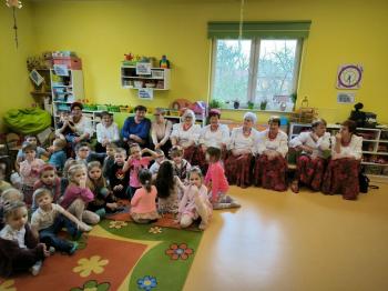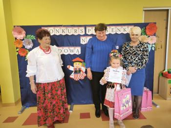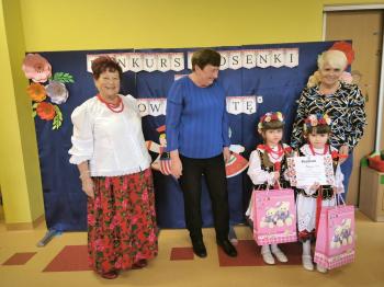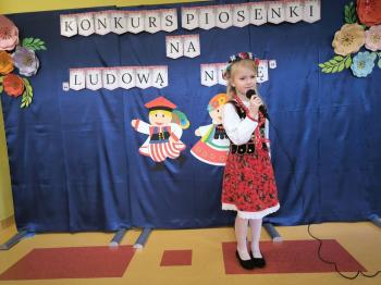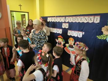 W dniu 8 marca w naszym przedszkolu odbyły się obchody Dnia Kobiet połączone z konkursem piosenki ludowej ,,Na ludową nutę". W tym dniu na zaproszenie w naszym przedszkolu gościliśmy Panie z zespołu,, Włosianeczki" oraz Panie z Koła Gospodyń Wiejskich z Stawów Monowskich, podczas konkursu pełniły one ważną rolę Jury. Na początku pani dyrektor Leokadia Kukla wszystkich przywitała i złożyła życzenia wszystkim kobietą, tym dużym i tym małym. Następnym punktem programu był występ dzieci z grupy Pszczółek, które zaśpiewały piosenkę pt. Hej od Krakowa jadę. Po występie starszaków nadszedł czas na występy konkursowe. Wszystkie z dziewczynek pięknie zaśpiewały, więc Jury miało ciężki wybór, jednak po naradzie dokonano wyboru, i tak: