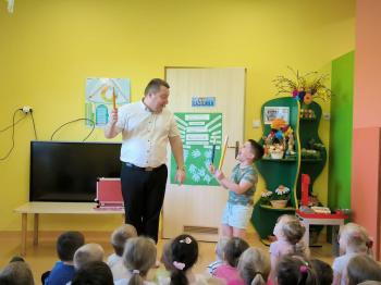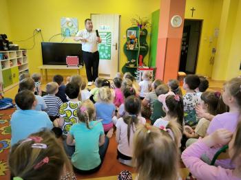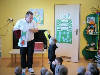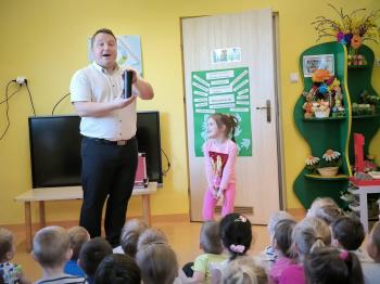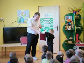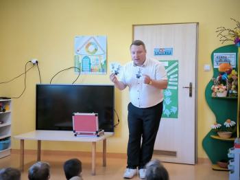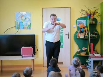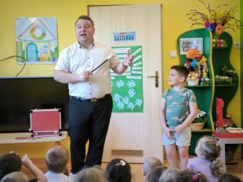 Dnia 09.04.2024r. nasze przedszkole odwiedził niezwykły gość. Ze swoim magicznym programem wystąpił prawdziwy iluzjonista...