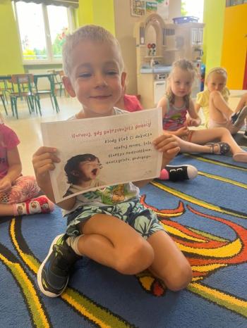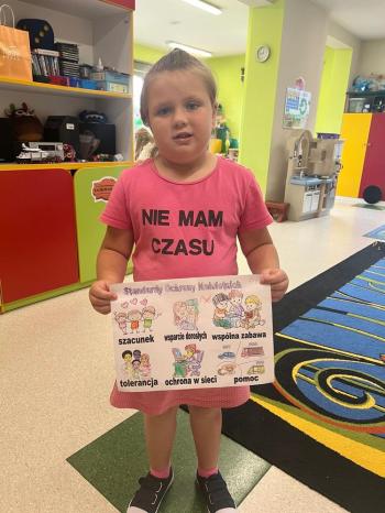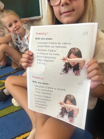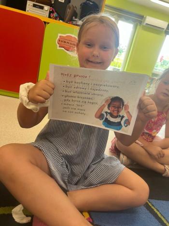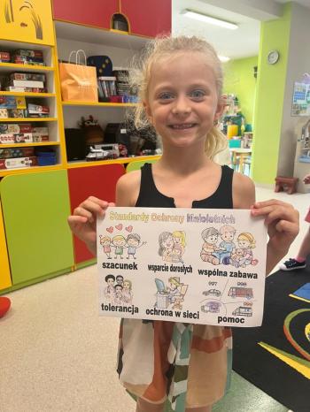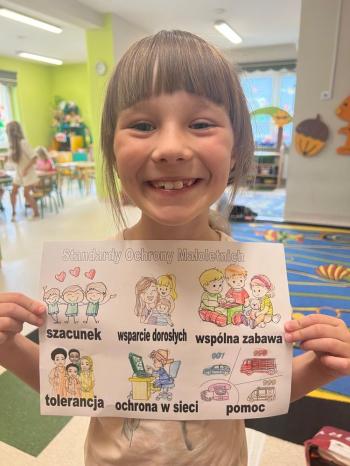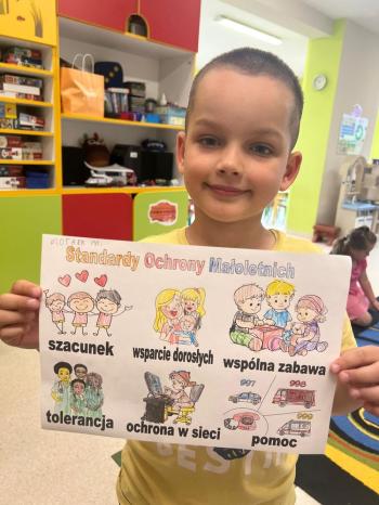 Przedszkolaki dowiedziały się, co to są „Standardy Ochrony Małoletnich”, zapoznały się ze swoimi prawami, ukazano im sposób dobrych oraz złych relacji między dziećmi oraz pomiędzy dziećmi, a osobami dorosłymi pracującymi w naszym przedszkolu. Co więcej, utrwaliły wiedzę dotyczącą uzyskania pomocy od takich instytucji jak: policja, pogotowie, straż pożarna, kiedy zachodzi taka potrzeba.