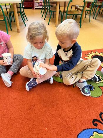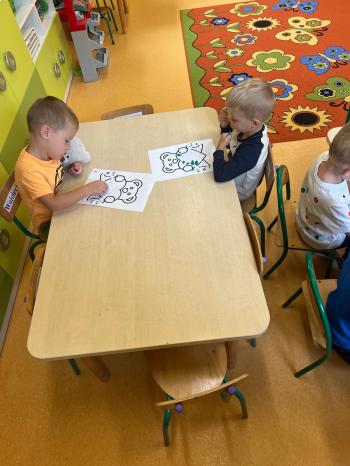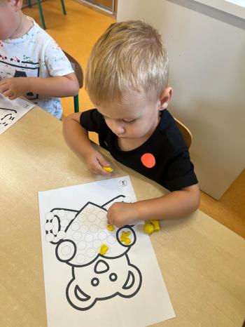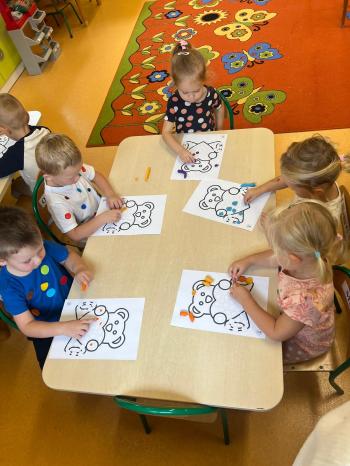 Dnia 16 września bieżącego roku szkolnego grupa „Motylki” obchodziła Dzień Kropki. W ramach zajęć, przedszkolaki odszukiwały w sali kropki w odpowiednich kolorach, jednocześnie poznając przy tym ich nazwy w języku angielskim. Ćwiczyły także koordynację ręka – oko, kiedy przesypywały kolorowe piegi z kubeczka do kubeczka. Przedszkolaki skakały także po kropkach wg kodu oraz instrukcji nauczyciela. Motylki, przeliczały również ilość kropek na biedronce podczas zabawy muzyczno-matematycznej pt. „Kropki Biedronki”. Na koniec, maluszki stworzyły piękne wykropkowane plasteliną misie, ćwicząc tym samym precyzję swoich paluszków. To był bardzo miły-kropkowy dzień, a już nie długo czekają nas kolejne zabawy w trakcie zajęć z okazji Dnia Przedszkolaka. Czekamy z niecierpliwością.