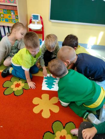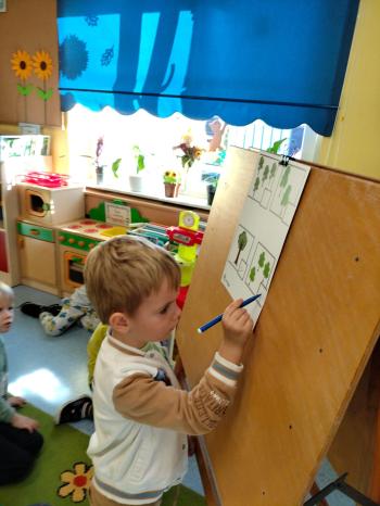 Przyroda jest bardzo ważna w naszym życiu. Wiemy, że musimy o nią dbać, by w przyszłości korzystać z jej uroków. W dniu drzewa przypomnieliśmy sobie ,,Co nam daje las?”, jakie gatunki drzew występują w naszej okolicy, a w różnych zadaniach, w których ,, bohaterem” było drzewo ćwiczyliśmy liczenie, dzieliliśmy wyrazy na sylaby, szukaliśmy cieni drzew i układaliśmy puzzle.