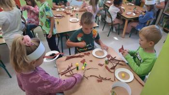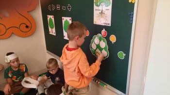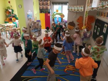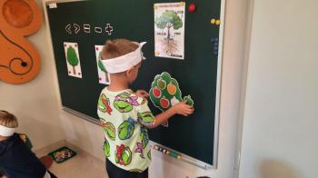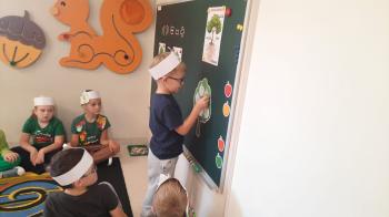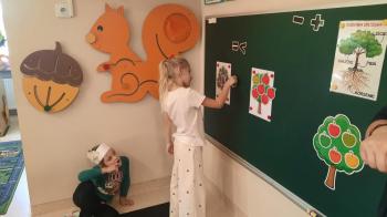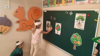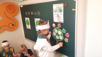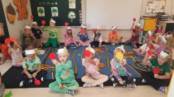 Podczas zajęć 10.10. grupa Pszczółek rozmawiała na temat znaczenia drzew w naszym środowisku. Obejrzeliśmy film edukacyjny, podczas którego przyjrzeliśmy się bliżej budowie drzew, ich liści, sposobie liczenia wieku drzew, a także poznaliśmy różne gatunki drzew iglastych i liściastych. Podczas zabaw matematycznych porównywaliśmy sobie liczność zbiorów i uczyliśmy się prawidłowego używania znaków <,>,=. Ćwiczyliśmy również naszą pamięć z wykorzystaniem kolorowych jabłuszek, a w zabawie ruchowej naśladowaliśmy drzewka o różnych porach roku. Na zakończenie dnia wykonaliśmy pracę plastyczną "Jesienne drzewko" i zrobiliśmy sobie quiz, aby podsumować wszystkie nowe wiadomości.