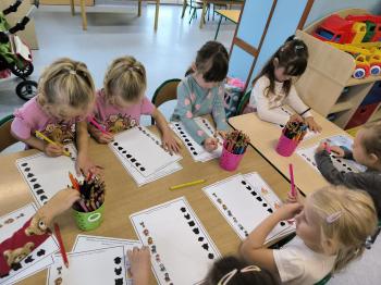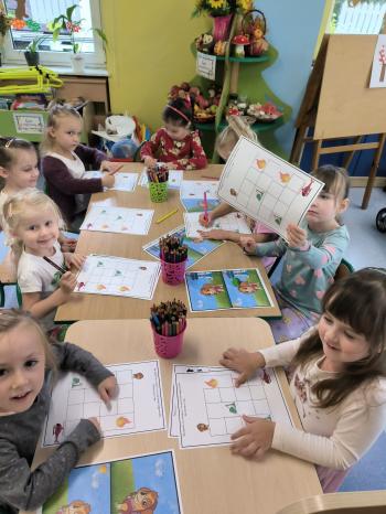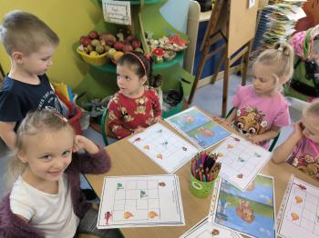 Czekały na nie, również karty pracy z zadaniami rozwijającymi logiczne myślenie i spostrzegawczość wzrokową.