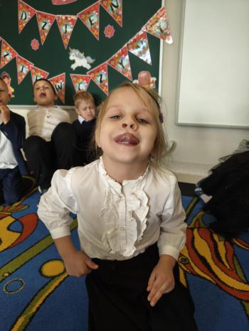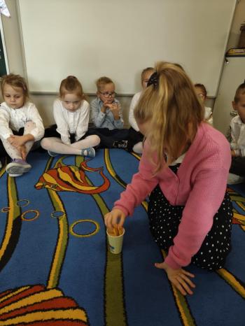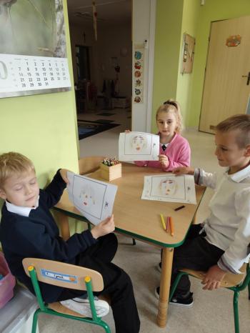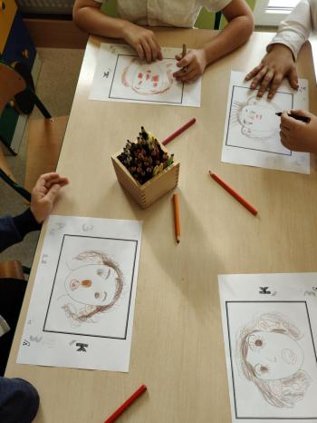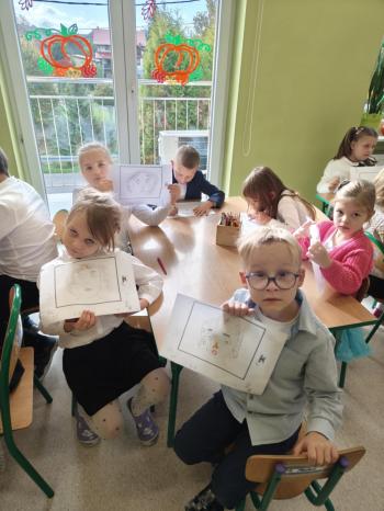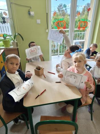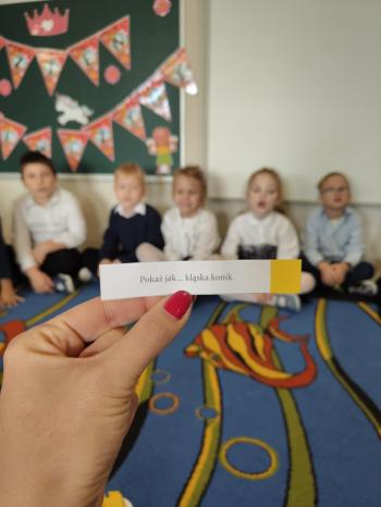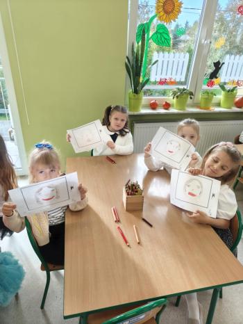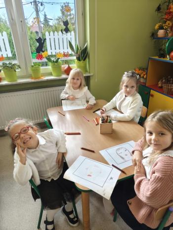 W Dniu Edukacji Narodowej przedszkolaki wzięły udział w kolejnych zajęciach w ramach projektu "Alfabet logopedyczny". Bawiliśmy się z literkami N - naśladuj mnie oraz K - kolorowa głowa. Powstały pięknie portrety pani Nauczycielki