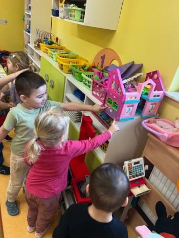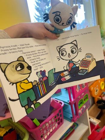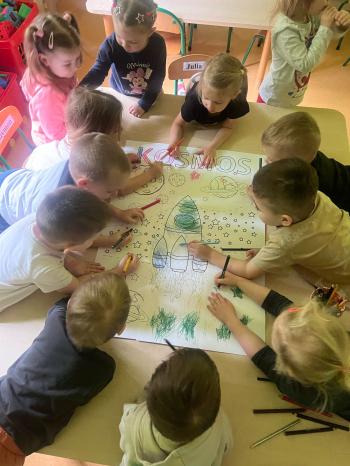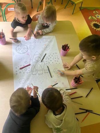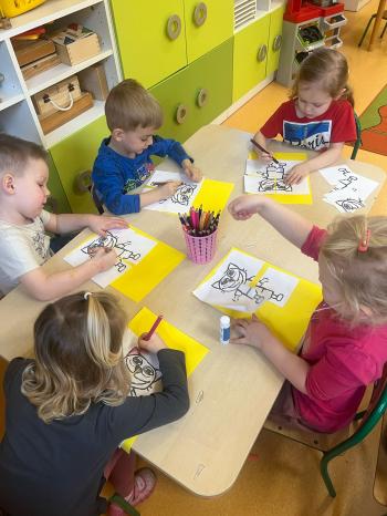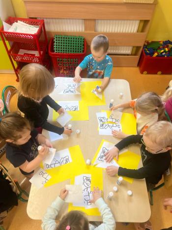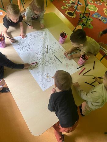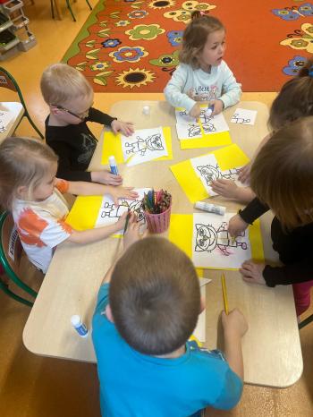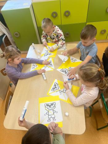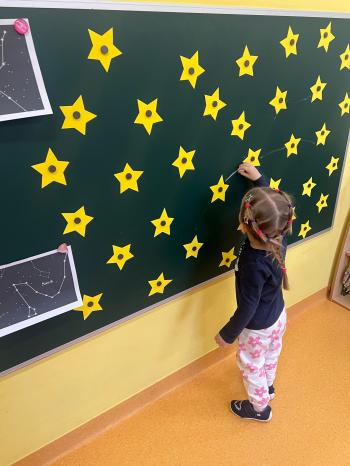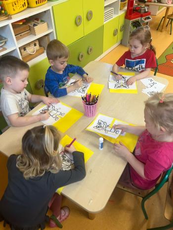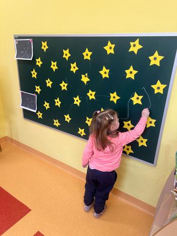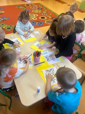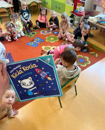W ramach programu prowadzonego w grupie najmłodszych przedszkolaków pt. „Z Kocią Kocią Maluchy Zmieniają się w Zuchy”, dzieci uczestniczyły w zajęciach: „Kicia Kocia to moje.” oraz „Kicia Kocia w kosmosie.” W ramach programu Motylki wysłuchały powyższych bajek czytanych przez nauczyciela, uczyły się dzielić zabawkami, dowiadywały się w jaki sposób rozwiązywać konflikty oraz wykonywały pracę plastyczną - puzzle pt. „Pacek”. W trakcie zajęć o kosmosie, dzieci współpracowały podczas kolorowania dużej kolorowanki, szukały gwiazd, planet i księżyca na naszym świetlnym stoliku, rysowały konstelacje gwiazd oraz oglądały film edukacyjny o kosmosie. Nasze maluszki świetnie się bawiły i wiele się nauczyły. Czekamy na dalsze zajęcia z projektu o ukochanej Kici Koci.