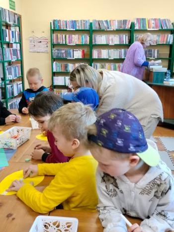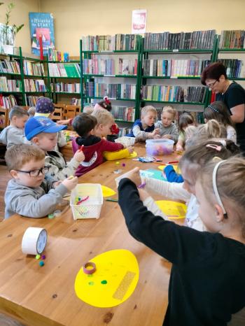 Jeszcze przed świętami dzieci z grupy ,,Biedronek” odwiedziły bibliotekę. Pani E. Dziedzic zaprosiła przedszkolaków, aby porozmawiać o tradycjach związanych ze świętami wielkanocnymi. Dzieci miały również okazję do podzielenia się swoimi spostrzeżeniami i doświadczeniem wyniesionym z domu rodzinnego.