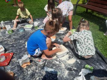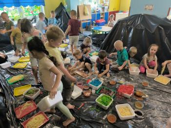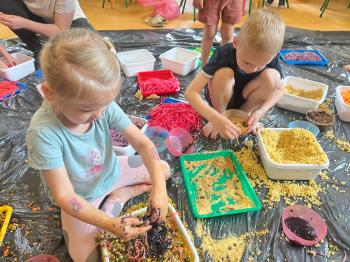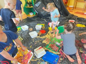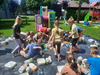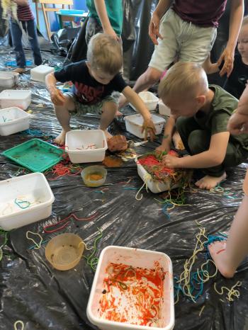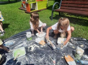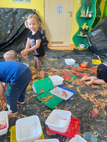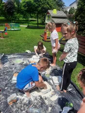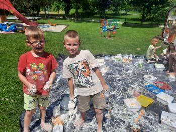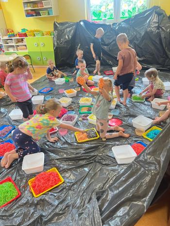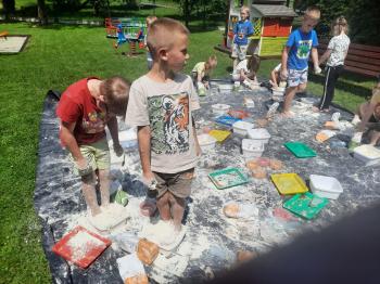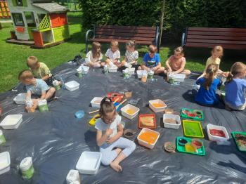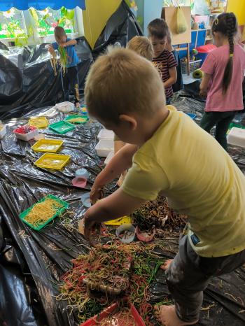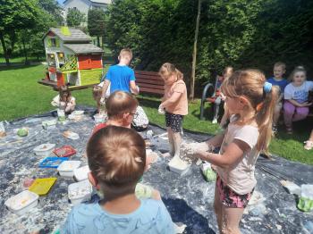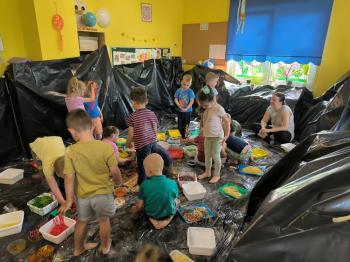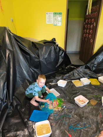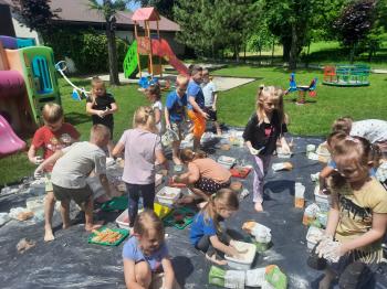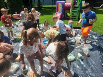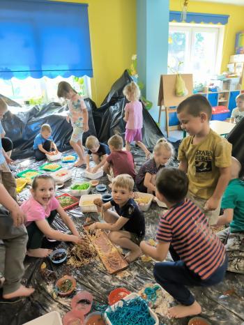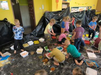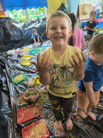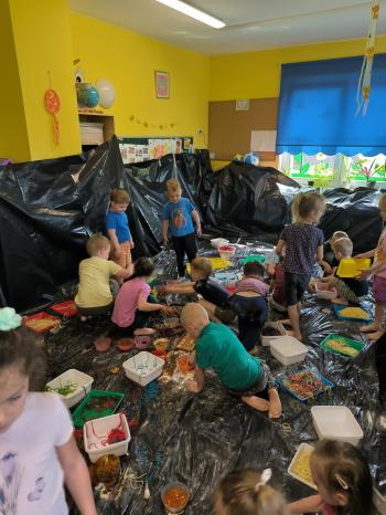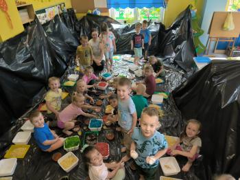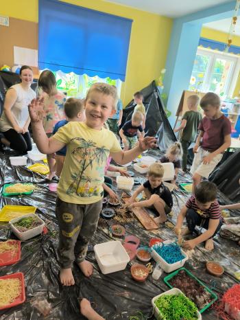 Zajęcia Sensoplastyczne® są najprostszą odmianą kontaktu dziecka ze światem, pierwszą informacją, tworzeniem świadomych znaków w porozumiewaniu się z ludźmi. Celem zajęć jest zatem szukanie porozumienia z dzieckiem wszystkimi możliwymi kanałami komunikacji (jego zmysłami). I właśnie w taki sposób, dzieci z wszystkich grup wiekowych, zapoznawały się ze światem dzięki zajęciom poprowadzonym przez panią Renatę Kuklę-Weryńską. Trochę się ubrudziliśmy, ale było warto!