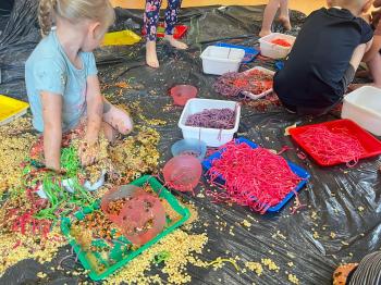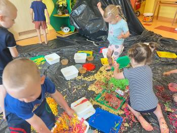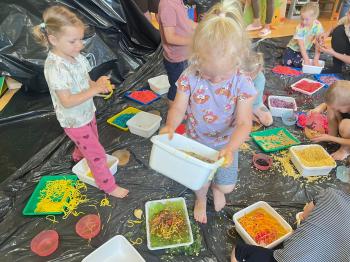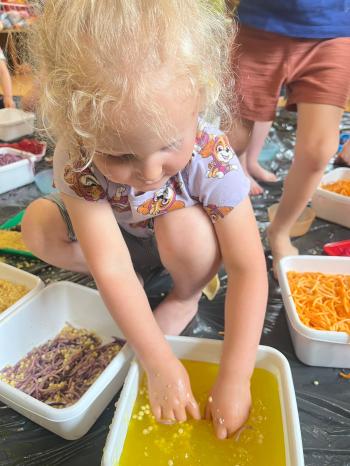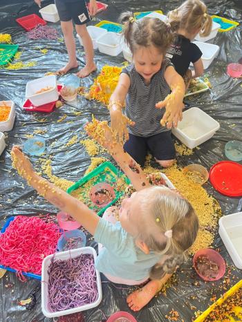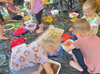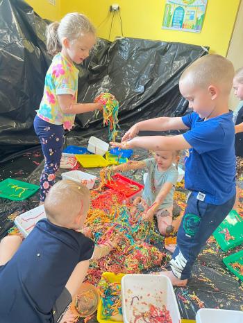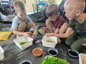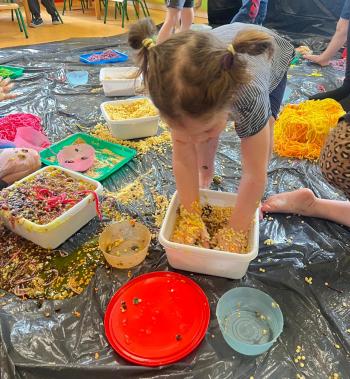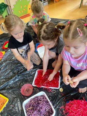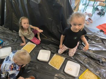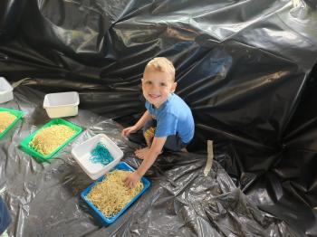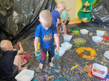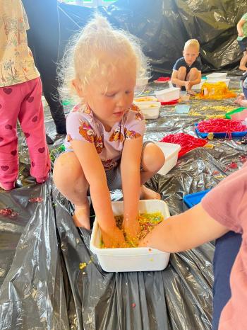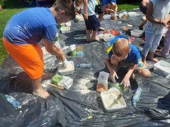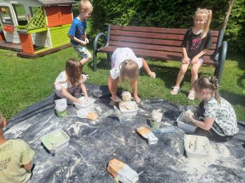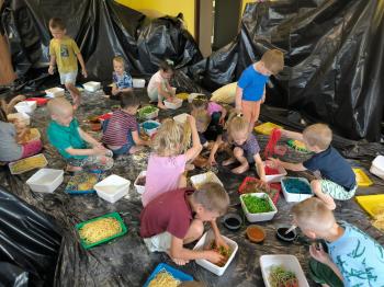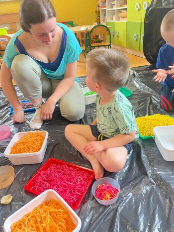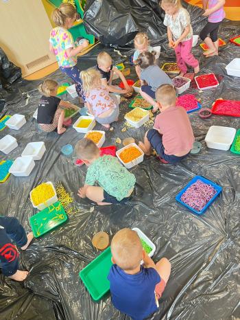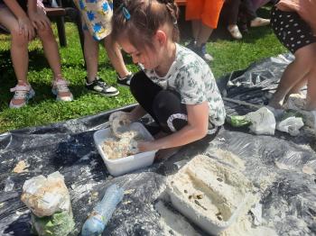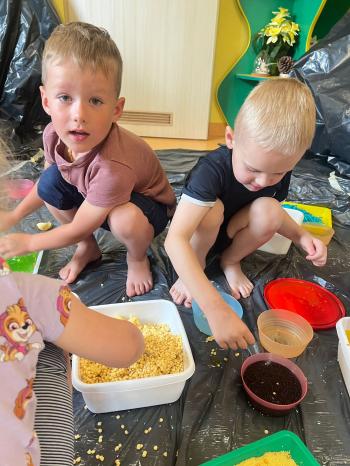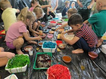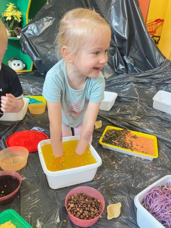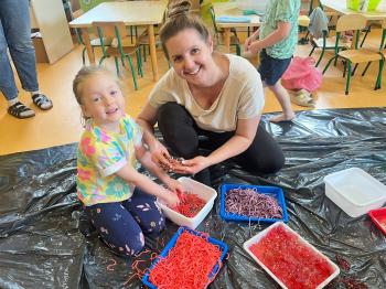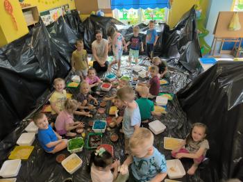 Zajęcia Sensoplastyczne® są najprostszą odmianą kontaktu dziecka ze światem, pierwszą informacją, tworzeniem świadomych znaków w porozumiewaniu się z ludźmi. Celem zajęć jest zatem szukanie porozumienia z dzieckiem wszystkimi możliwymi kanałami komunikacji (jego zmysłami). I właśnie w taki sposób, dzieci z wszystkich grup wiekowych, zapoznawały się ze światem dzięki zajęciom poprowadzonym przez panią Renatę Kuklę-Weryńską. Trochę się ubrudziliśmy, ale było warto!