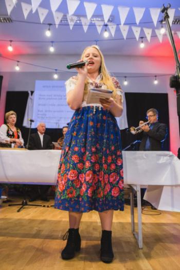Mieszkańcy naszej gminy świętowali Niepodległość wesoło, ze śpiewem na ustach, kłaniając się tradycji, często w regionalnych strojach. 101 rocznicę odzyskania Niepodległości fetowali, biesiadując 8 listopada w Domu Ludowym w Grojcu.