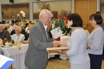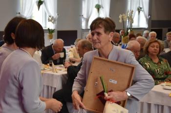 Życzenia i upominki jako pierwsze odebrały małżeńskie pary, które przeżyły w razem 60 lat. Diamentowe Gody w 2021 roku obchodzili: