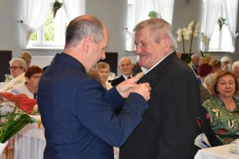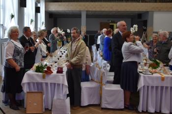 Pary małżeńskie, które obchodziły w ubiegłym roku Złote i Diamentowe Gody, 24 maja w Grojcu przyjęły podziękowania, gratulacje i życzenia.