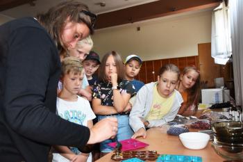 W czasie tegorocznych wakacji dzieci z gminy Oświęcim uczestniczą w specjalnie dla nich przygotowanych i prowadzonych przez OKSiR zajęciach artystyczno-edukacyjnych. W ich trakcie mają okazję do wykorzystania i rozwoju swoich talentów. Wśród nich szczególnym zainteresowaniem cieszą się zajęcia z tworzenia mydełek. W ich trakcie dzieci mają okazję bawić się i uczyć jednocześnie. Jest to także doskonała okazja do integracji najmłodszych mieszkańców naszej gminy, którzy mogą się lepiej poznać. Dzięki temu spotykając nowych ludzi mogą nawiązać przyjaźnie na całe życie. Zabawie towaryszy uśmiech i dużo dziecięcej radości, która sprawia, że życie staje się bardziej kolorowe.