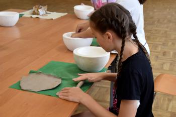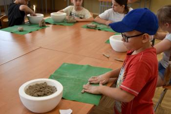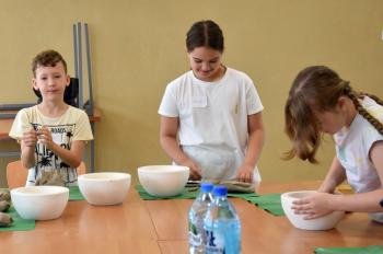 Za nami pierwsze zajęcia wakacyjne w ramach Wakacje z Ośrodkiem Kultury, Sportu i Rekreacji Gminy Oświęcim - warsztaty ceramiczne w remizie OSP w Broszkowicach.