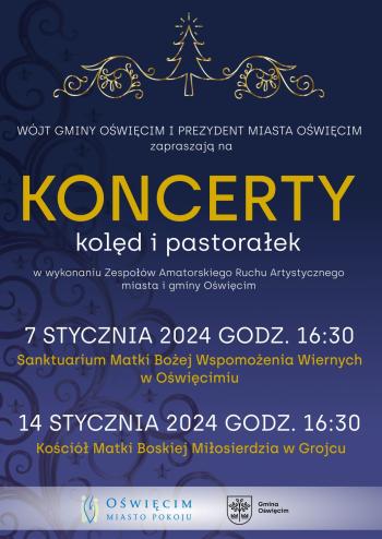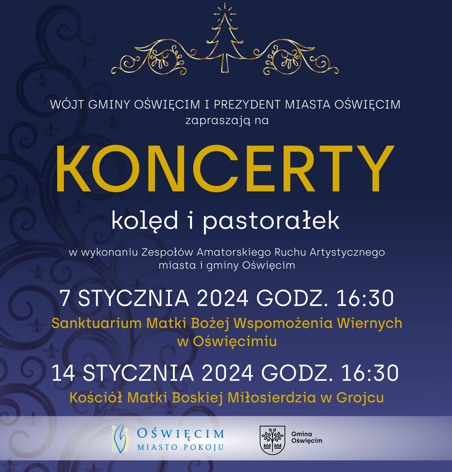 Wójt gminy Oświęcim Mirosław Smolarek i prezydent Oświęcimia Janusz Chwierut zapraszają na Koncerty Kolęd i Pastorałek w wykonaniu Zespołów Amatorskiego Ruchu Artystycznego miasta i gminy Oświęcim.