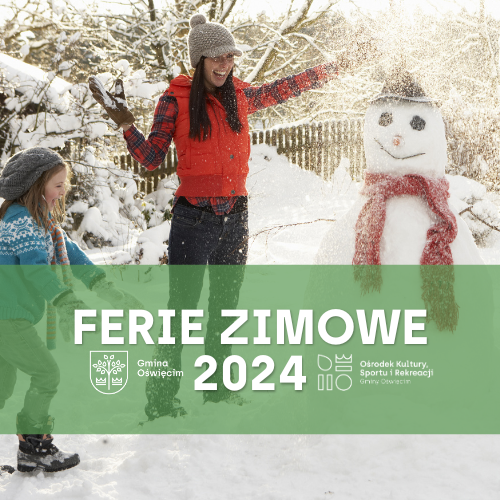 Zapraszamy dzieci z gminy Oświęcim w wieku szkolnym do udziału w zajęciach i wycieczkach w terminie 12.02-24.02.2024 w ramach Ferii 2024 z Ośrodkiem Kultury, Sportu i Rekreacji Gminy Oświęcim.