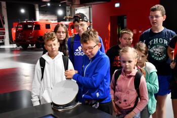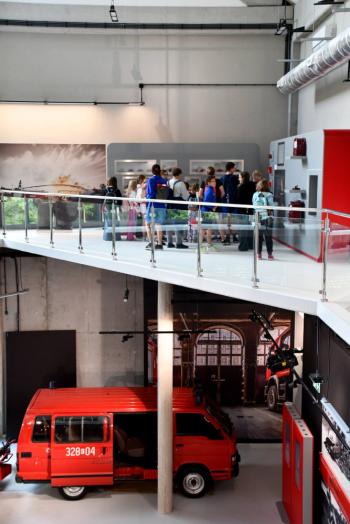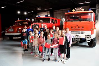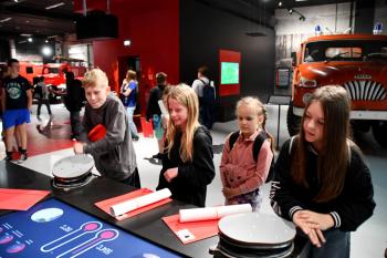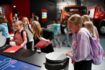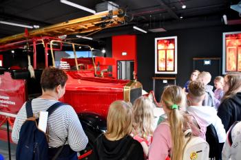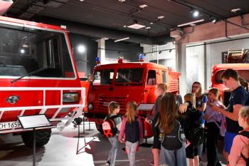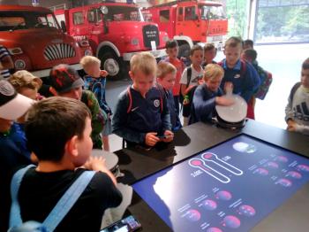 W trakcie drugiej części dzieci zwiedziły muzeum w przewodnikiem gdzie mogły m.in. wziąć udział w interaktywnych zabawach oraz zobaczyć dawne wozy strażackie.