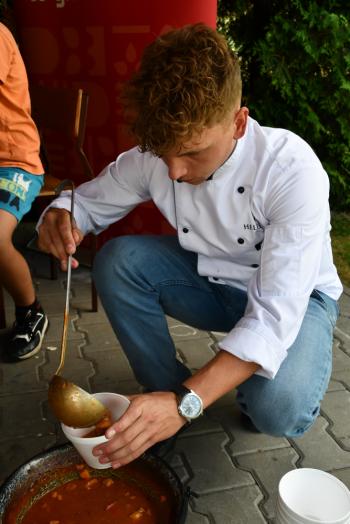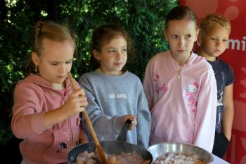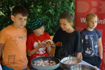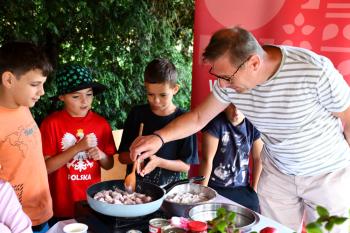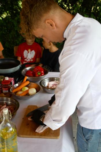 Dzieci miały okazję dowiedzieć się jak przyrządzić gulasz w kociołku oraz poznać tajniki kuchni i gotowania. Nie obeszło się bez zadawania pytań prowadzącemu, m.in. o program czy kulinarne podróże. Po wspólnym gotowaniu, nadszedł czas na degustację wspólnie przyrządzonych smakołyków.