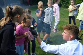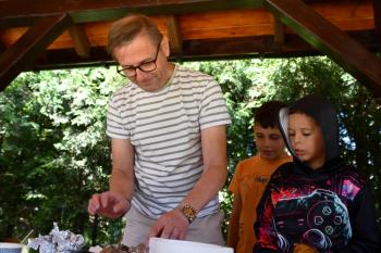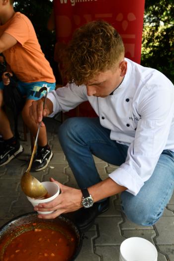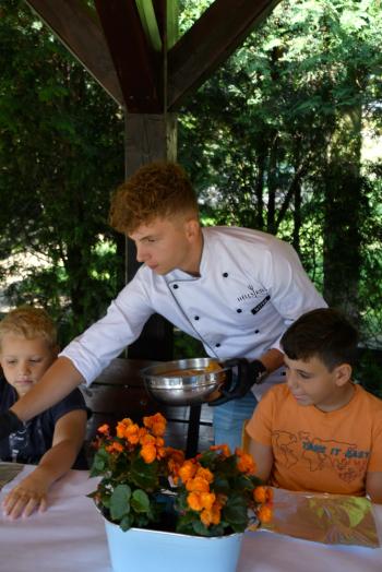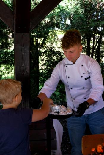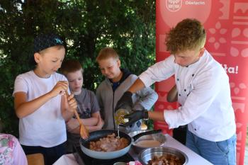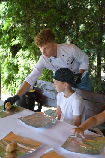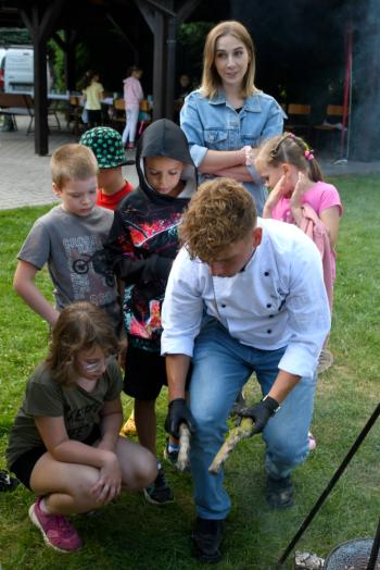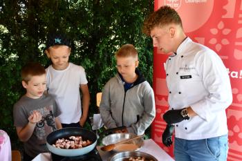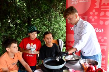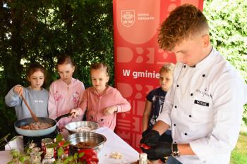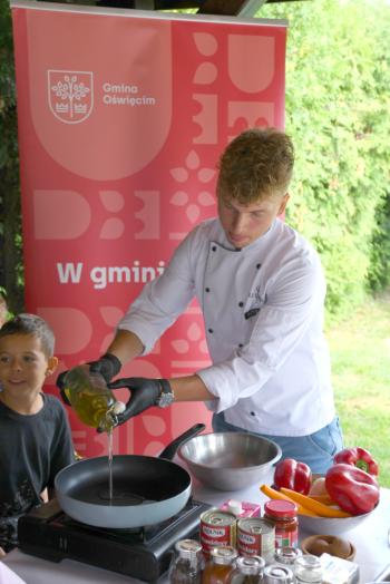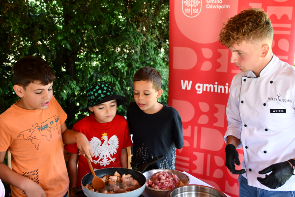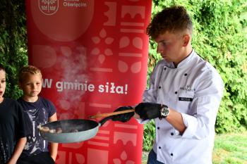 Witold Mondry (zwycięzca 8. edycji Hell's Kitchen Polska) przygotował dla najmłodszych mieszkańców Gminy Oświęcim warsztaty kulinarne na świeżym powietrzu.
